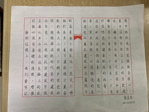 “源清流正·涵养三观”读书节读者学党史笔记选——郭美玲同学书