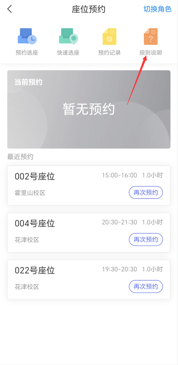 第五步:选择座位预约,进入选座页面,右上角有规则说明可根据需要了解