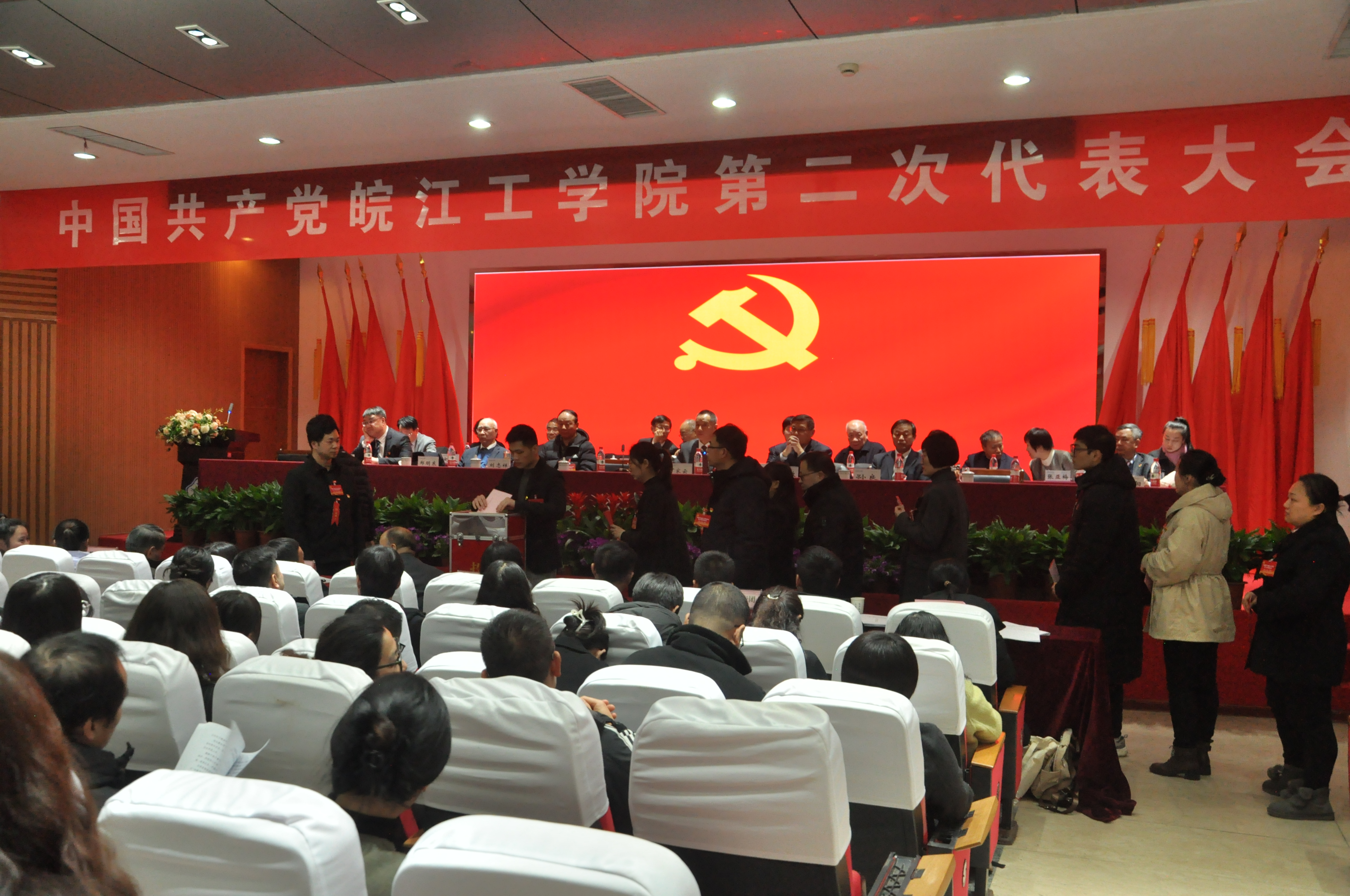 大会在嘹亮的《国际歌》中圆满闭幕。随后,学校召开新一届纪委第一次全体会议、新一届党委第一次全体会议。