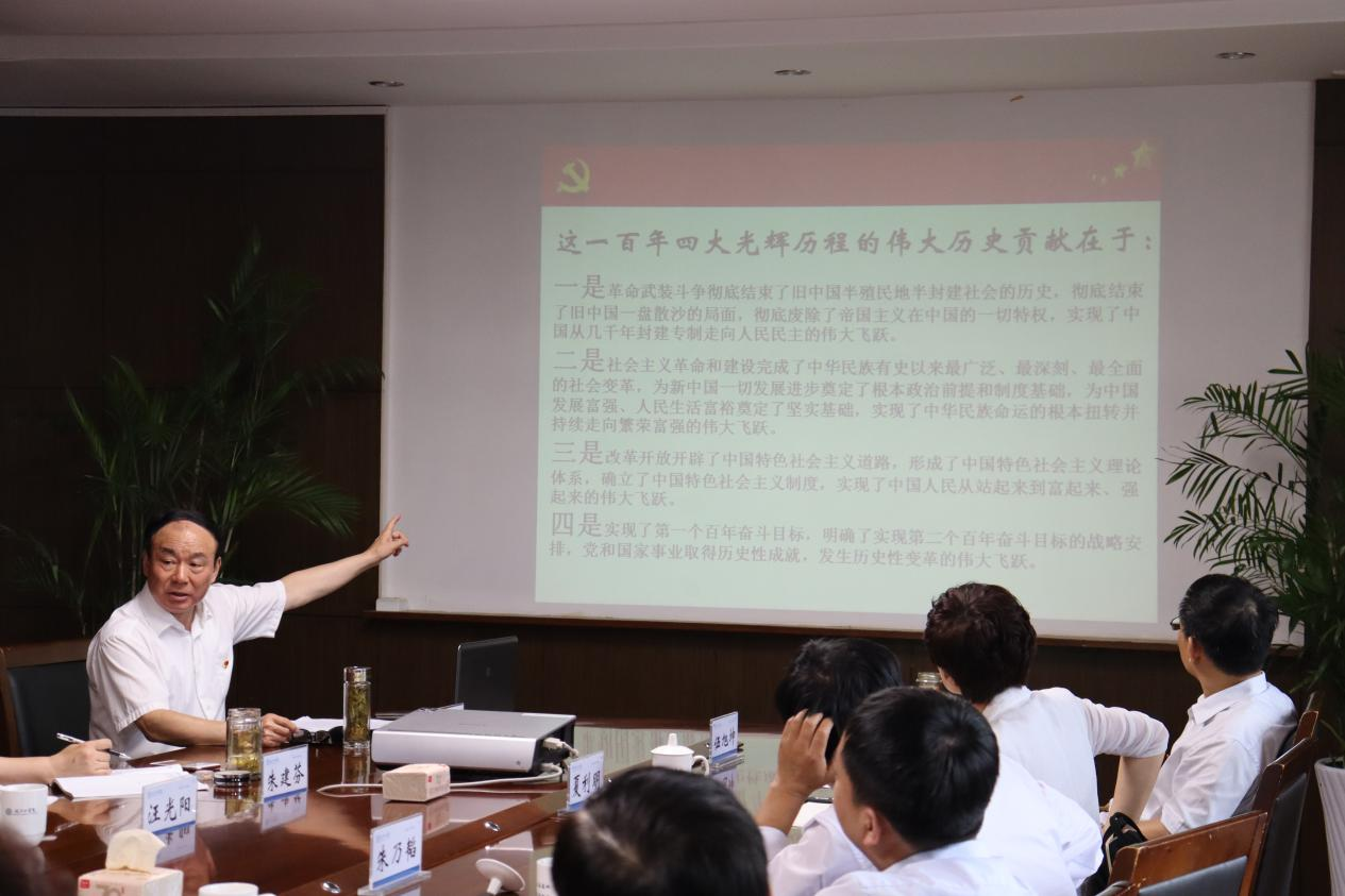 会上,刘志祥介绍了学校开展党史学习教育的方式和计划,并以“中国共产党为什么能”作为主题发言。他从“中国共产党的百年光辉历程、中华民族实现了百年伟大变迁、中国人民实现了百年人间奇迹、中国共产党从苦难到辉煌的宝贵经验”四个方面宣讲党的发展历程和伟大成就。刘志祥指出,习近平总书记“七一”重要讲话回顾了党百年奋斗的光辉历程,展望了中华民族伟大复兴的光明前景,系统阐述了以史为鉴、开创未来必须牢牢把握的“九个必须”经验启示和根本要求,为党和国家各项事业发展明确了前进方向,全校师生要牢记初心使命,继续不懈努力。