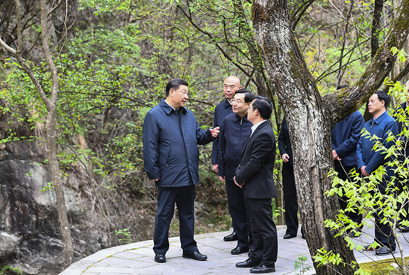 4月20日至23日,中共中央总书记、国家主席、中央军委主席习近平在陕西考察。这是4月20日,习近平在位于秦岭山脉东段的牛背梁国家级自然保护区月亮垭,察看秦岭自然生态,了解陕西省吸取秦岭北麓违建别墅问题教训、抓好生态保护等情况。