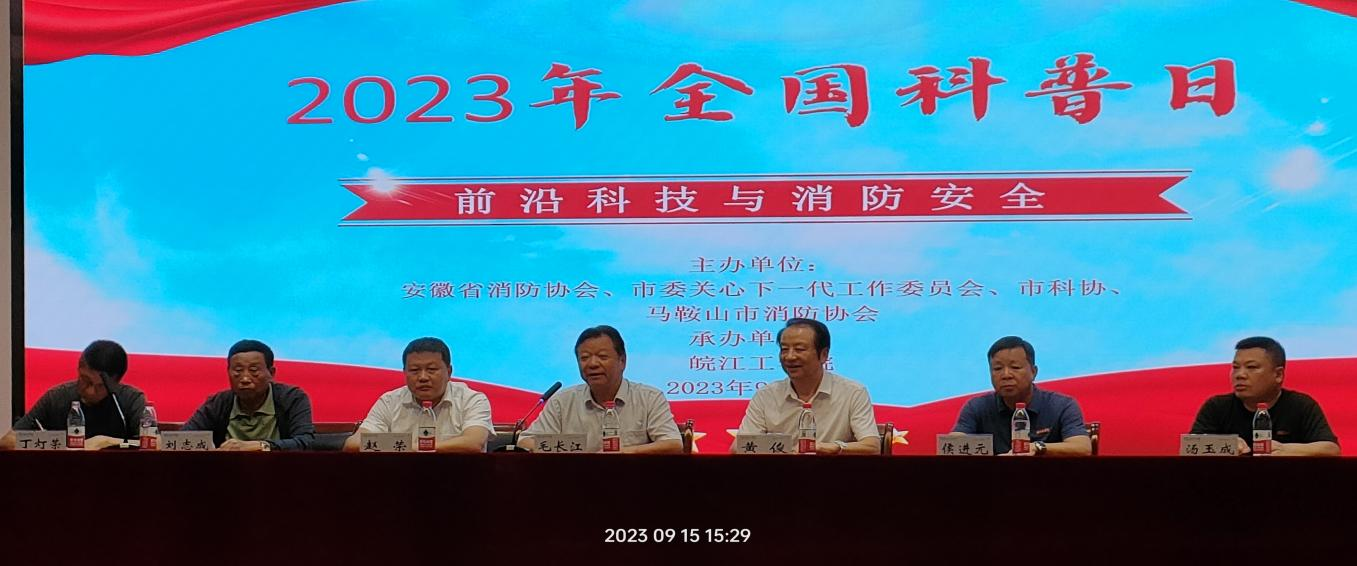 9月15日下午,由安徽省消防协会、市委关心下一代工作委员会、市科协、马鞍山市消防协会主办,beat365正版唯一官方网站承办的“2023年全国科普日《前沿科技与消防安全》活动”在beat365霍里山校区报告厅举办。副校长侯进元,安徽省消防协会副会长兼秘书长黄俊,马鞍山市关心下一代工作委员会主任毛长江,马鞍山市委老干部局局长,市关工委秘书长贾楠,马鞍山市科学技术协会党组成员、副主席赵荣,马鞍山市消防协会会长、安徽省消防协会工作站主任刘志成,马鞍山市消防协会秘书长汤玉成,马鞍山市消防协会副会长、安徽省消防协会工作站副主任丁灯荣出席,全校师生代表300余人参加活动,活动由丁灯荣主持。