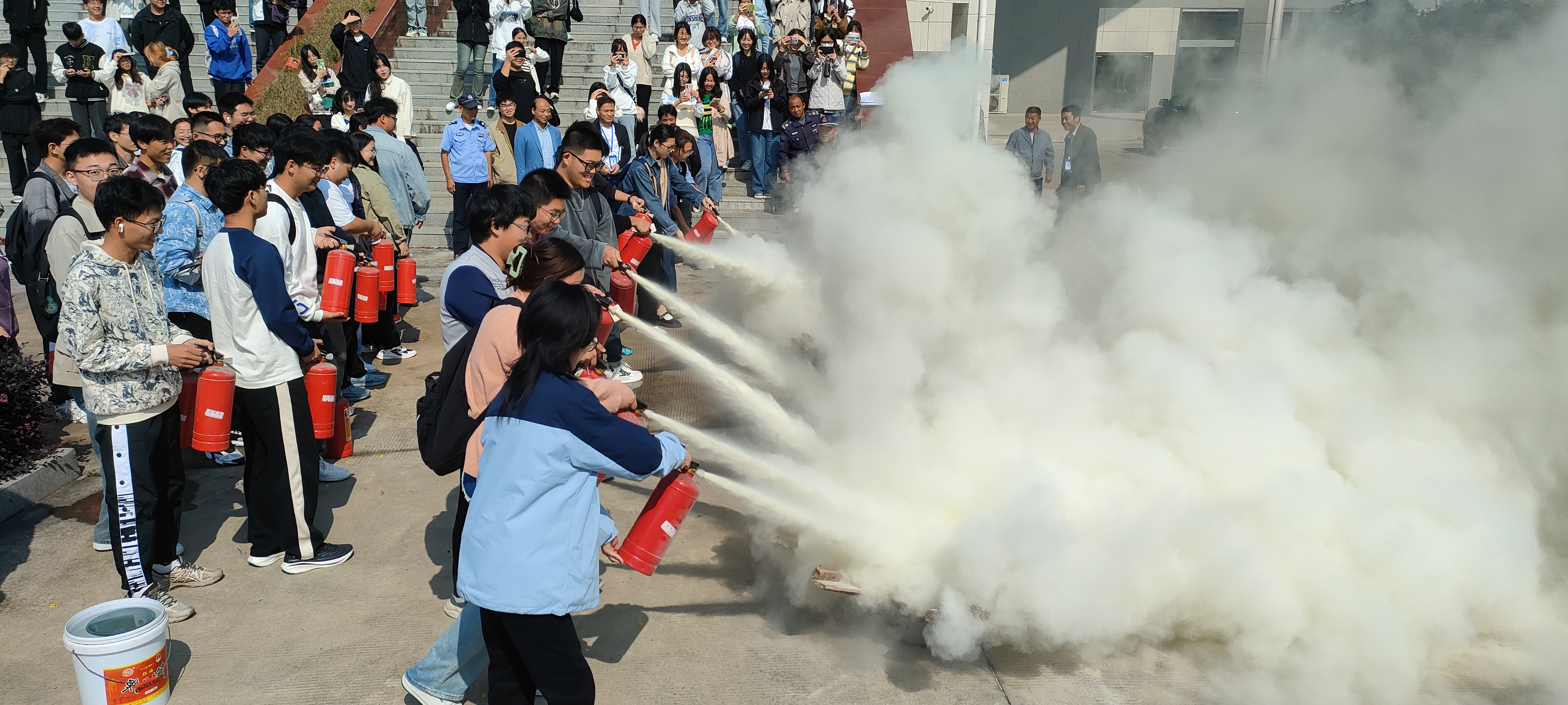 随后,在灭火演练活动中,王鲲在现场向同学们详细讲解灭火器的使用方法,模拟真实火情,布置了起火点,同学们在安全指导下逐一体验了灭火过程。