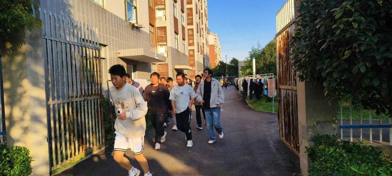 此外,保卫科还携手校区管委会等部门,精心策划并实施了一场模拟火情应急疏散演练。指挥组事先制定了周密的演练方案及逃生疏散路线,并精心挑选了1、3、7、10四栋宿舍楼的约1200名学生作为演练对象。随着疏散指令的响起,各楼层的学生迅速响应,按照既定的动作和路线有序疏散至安全集合点。指导老师迅速到位,第一时间清点人数,确保每位学生安全无虞。整个演练过程历时9分30秒,秩序井然,未发生任何拥挤踩踏或秩序混乱的情况。