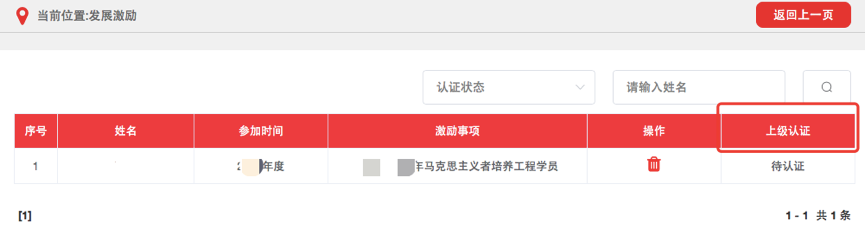 发展激励相应记载完成并提交后,如记载方为团(总)支部须由直属上级团组织进行审核,审核通过后生效。团组织管理员可在相应列表中查看审核进度和记载信息,如记载信息有误可在上级审批前进行删除操作,如上级已审批则不可删除。