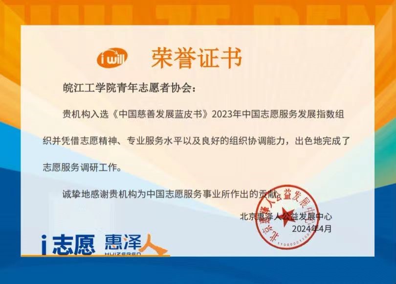 beat365正版唯一官方网站青年志愿者协会入选《中国慈善发展蓝皮书》2023年中国志愿服务发展指数组织