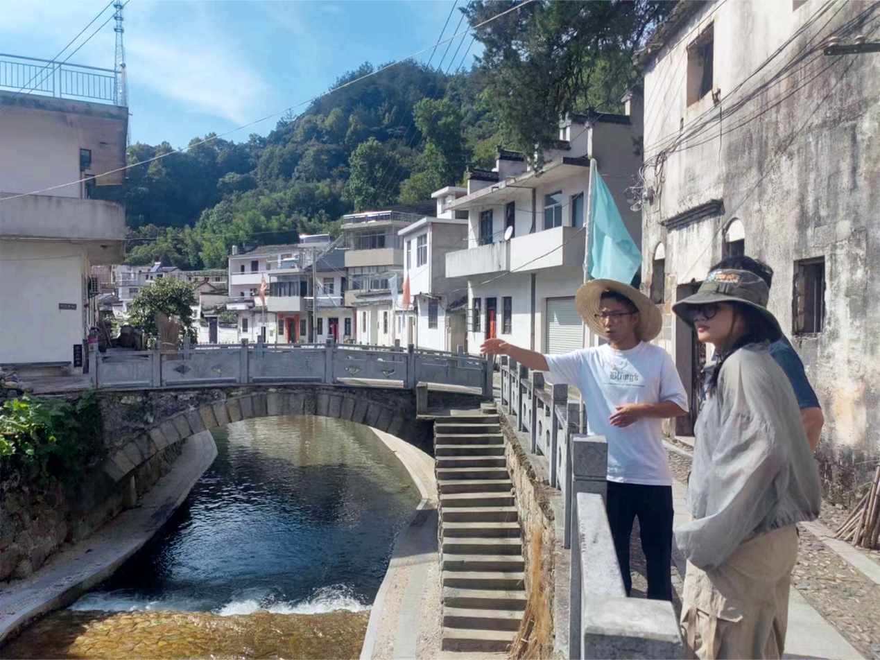 村支书在为实践队员讲解当地即将规划发展夜漂旅游项目。伴随乡村旅游的蓬勃兴起,绩溪县家朋乡霞水村依靠其别具一格的自然风光以及丰富多彩的文化资源,逐步成为备受游客钟爱的旅游目的地。
