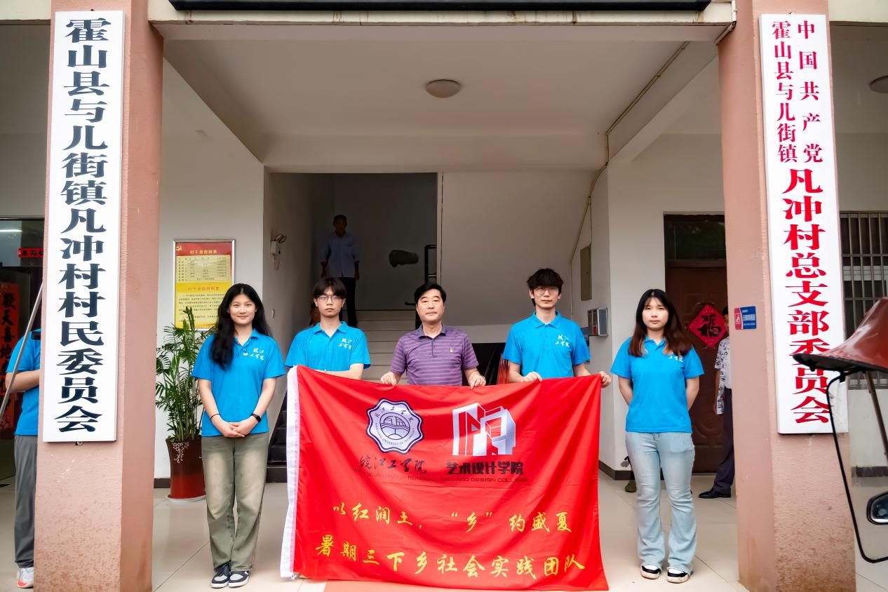 为深入学习宣传贯彻党的二十大精神,推动大学思政课堂与社会实践相结合,帮助青年大学生上好“社会思政课”。beat365正版唯一官方网站艺术设计学院社会实践团开展了“以红润土,“乡”约盛夏”项目。在学院数媒教研室主任阎磊和分团委书记刘慧的指导下,于2024年6月30日来到安徽省六安市霍山县与儿街镇凡冲村开