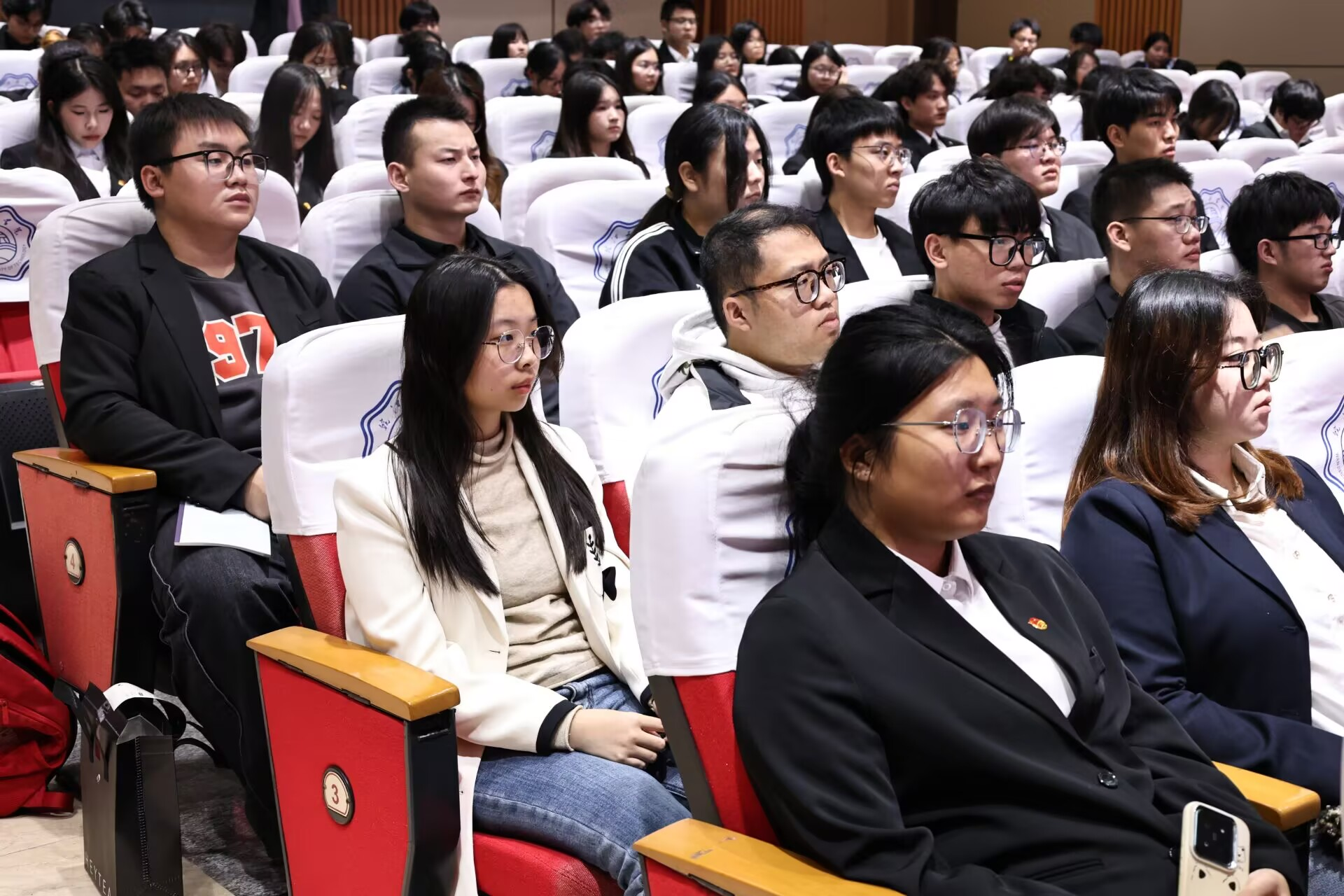 为深入贯彻落实习近平总书记关于青年工作的重要思想,为党培养坚定可靠、堪当重任的青年政治骨干,2025年11月12日18:30,beat365正版唯一官方网站第七期“青年马克思主义者培养工程”培训班开班仪式暨青马第一讲在霍里山校区图书馆报告厅隆重举行。校党委副书记、副校长孙良,校团委副书记郭天宇,各学院分团委书记及135名青马学员齐聚一堂,共同开启这场思想淬炼与青春成长的征程。