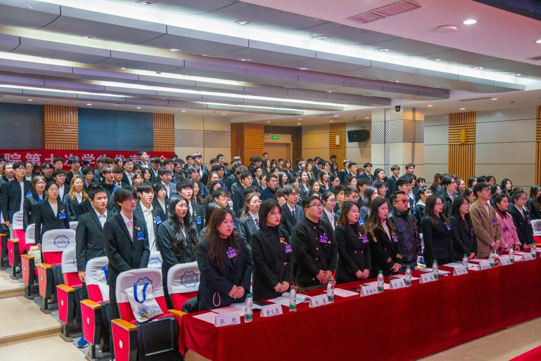 2025年12月17日下午2点,beat365正版唯一官方网站第七次学生代表大会在霍里山校区图书馆报告厅隆重召开。校党委副书记、副校长孙良,院务部部长江春明、教务部常务副部长孙娴、学工部副部长许戎、校团委书记尚贤燕、校团委兼职副书记徐靖、校团委挂职副书记王思奇以及各二级学院党总支副书记、分团委书记与学校178名学生代表共同出席开幕式。