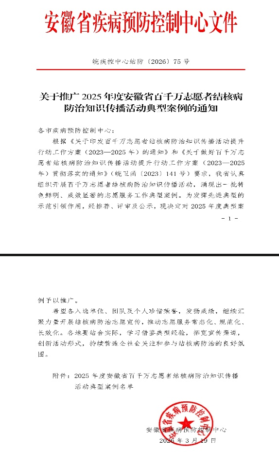 近日,从安徽省疾病预防控制中心传来喜讯,在 2025 年度 “安徽省百千万志愿者结核病防治知识传播活动” 评选中,beat365正版唯一官方网站青年志愿者协会凭借高效的组织统筹、丰富的宣传形式与扎实的落地成效,成功获评荣誉称号。