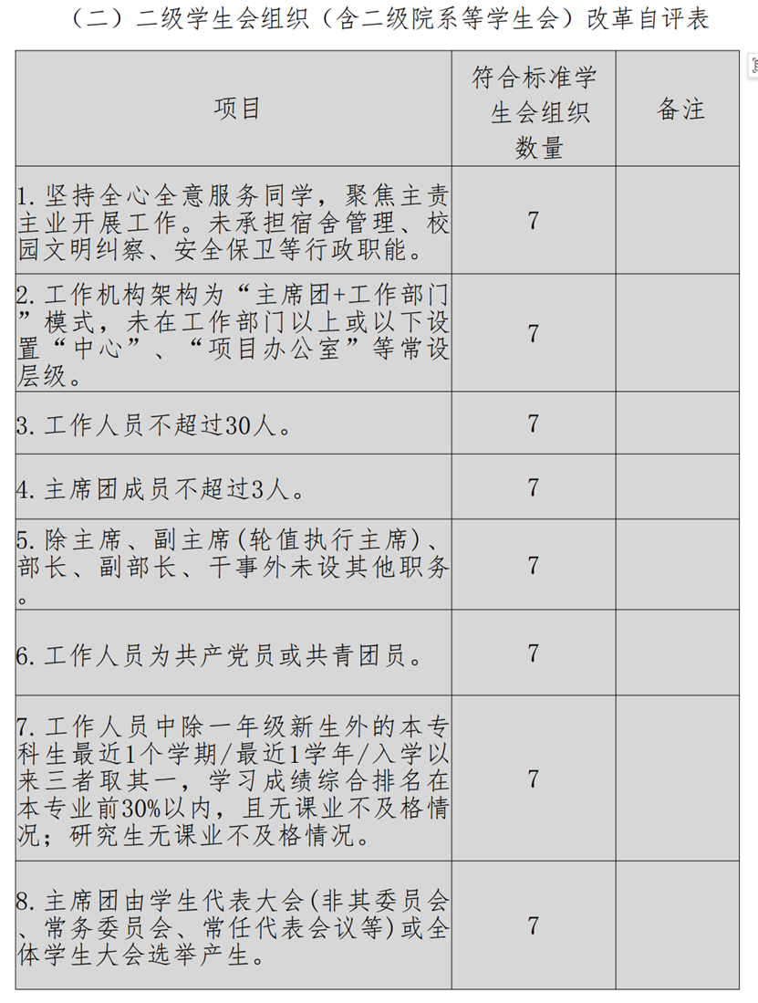2023年beat365正版唯一官方网站学生会改革自评情况的公示