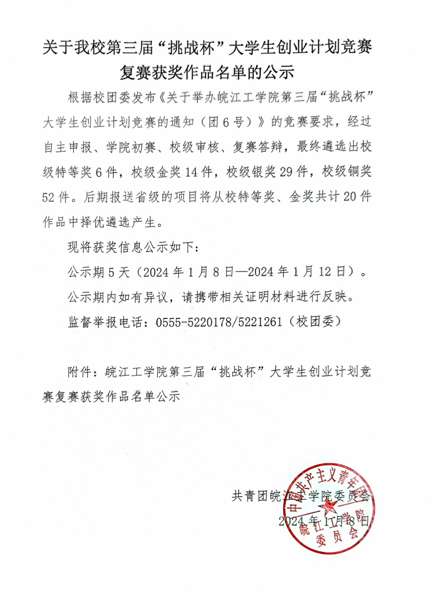 关于beat365第三届“挑战杯”大学生创业计划竞赛复赛获奖作品名单的公示