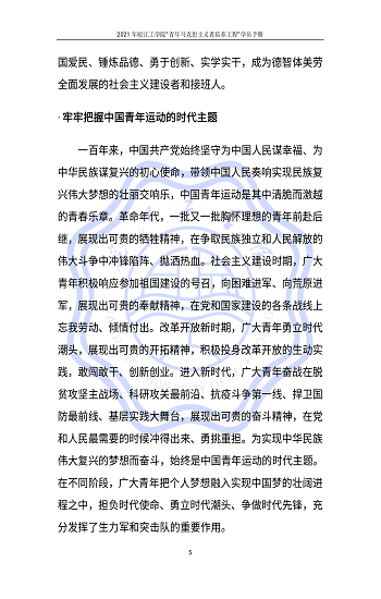 目前,全校共有团支部454个,今年组织化党史学习教育覆盖率100%,团支部平均理论学习次数5次。已组织开展的校级理论学习有:新民主主义革命专题、社会主义革命和建设专题、改革开放专题、中国特色社会主义新时代专题、习近平总书记“七一”重要讲话精神学习等活动。