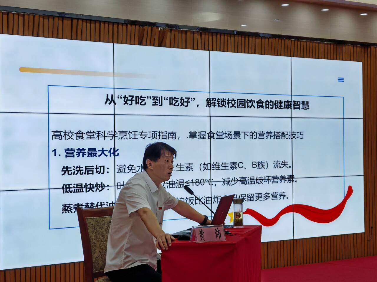 培训环节,行业资深专家黄炜、吴燕分别以《高校食堂科学烹饪与健康饮食》《高校食堂食品安全管理要点》为主题开展专题授课,结合典型案例深入浅出解析行业规范与实操技巧。培训结束后,全体参会人员参与食堂管理知识闭卷考试,以考促学巩固培训成果。