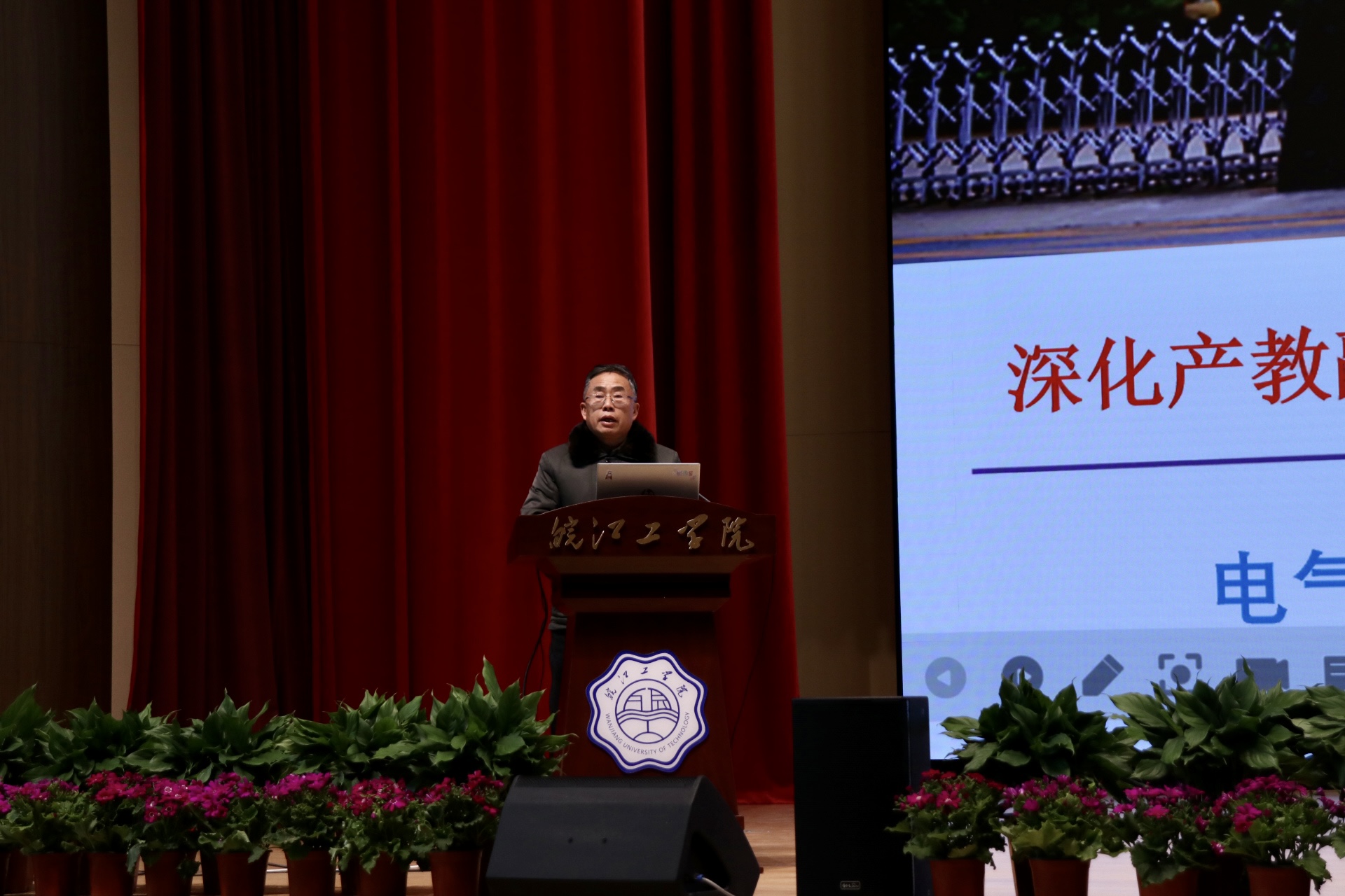 督导专员、党委书记丁家云作了题为《坚持社会主义办学方向,坚持五育并举,用实际行动回答新时代的教育三问》重要讲话。丁家云就学校如何落实为党育人、为国育才,坚持立德树人的根本任务,提出以下要求:一是坚持一个“大方向”,学校必须毫不动摇、旗帜鲜明地坚持社会主义办学方向,更加强化党对高校的领导;二是研究一个“大课题”,学校要在新的背景下,认真思考研究习近平总书记提出的“培养什么人、怎样培养人、为谁培养人”这一大课题,担当起“为党育人、为国育才”的光荣历史使命;三是建好一门“大课程”,通过把时代问题讲清楚,引导学生理性认识世界,不断增强思政课的时代感,推动思政课时代化,把伟大的中国之路讲清楚、把感人的中国故事讲鲜活;四是成为一名“大先生”,把教书育人的职责和国家利益结合起来,善于把教育规律和立德树人的根本任务贯穿到教育教学全过程,将德智体美劳统一起来,协调推进、因材施教。同时,学校也要坚持走“人才强校”之路,构建“引得来、留得下、用得好”的教师发展机制,让教师在教书育人中体现价值的同时也实现自己的发展。