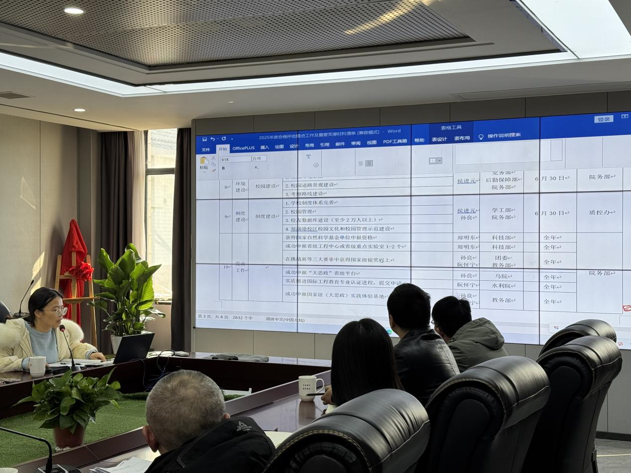 会上,质控办常务副主任黄翠解读了2025年度合格评估重点工作及重要支撑材料清单。本次评估涵盖评估专项、教育教学、办学条件等十个方面。各方面工作分别聚焦核心指标、教学质量提升、硬件设施完善等任务。同时,每项工作都明确了责任部门、牵头校领导和完成截止时间,确保工作高效有序推进。