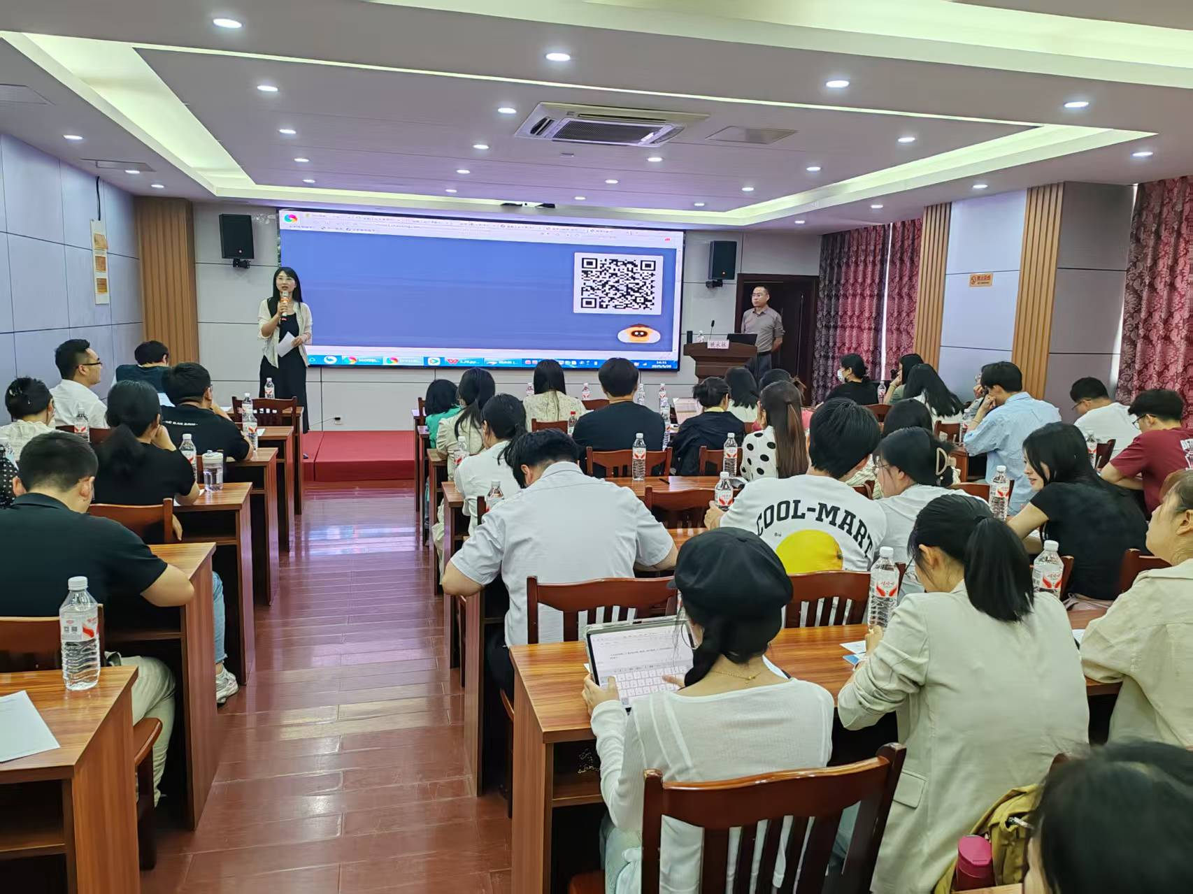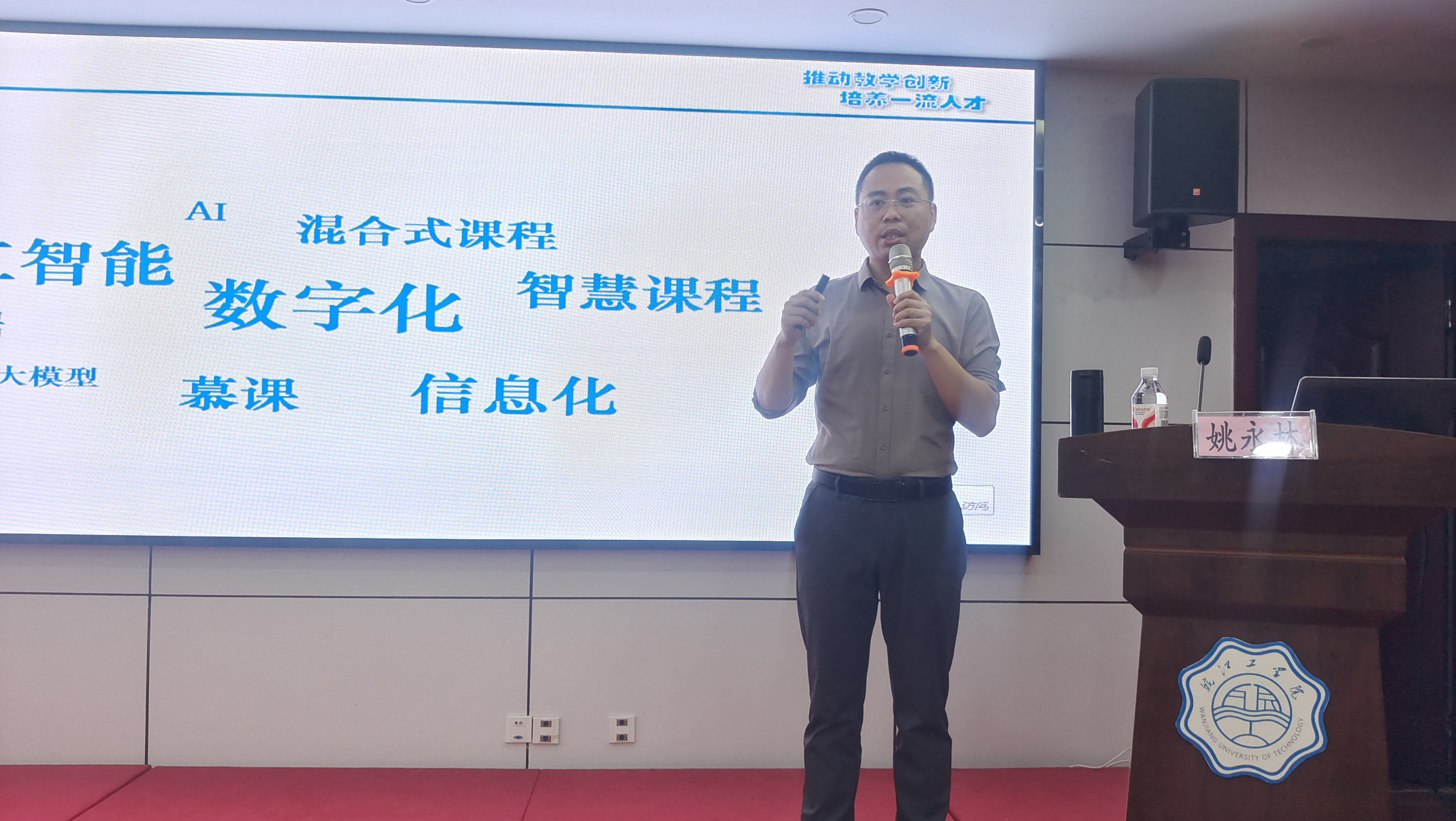2025 年5月28日下午,学校邀请到安徽工业大学姚永林教授,为学校青年教师带来了一场主题为《数字化教学:从 PPT 到智慧课程》的精彩讲座。此次讲座旨在提升青年教师数字化教学能力,推动学校教学信息化建设迈向新台阶。