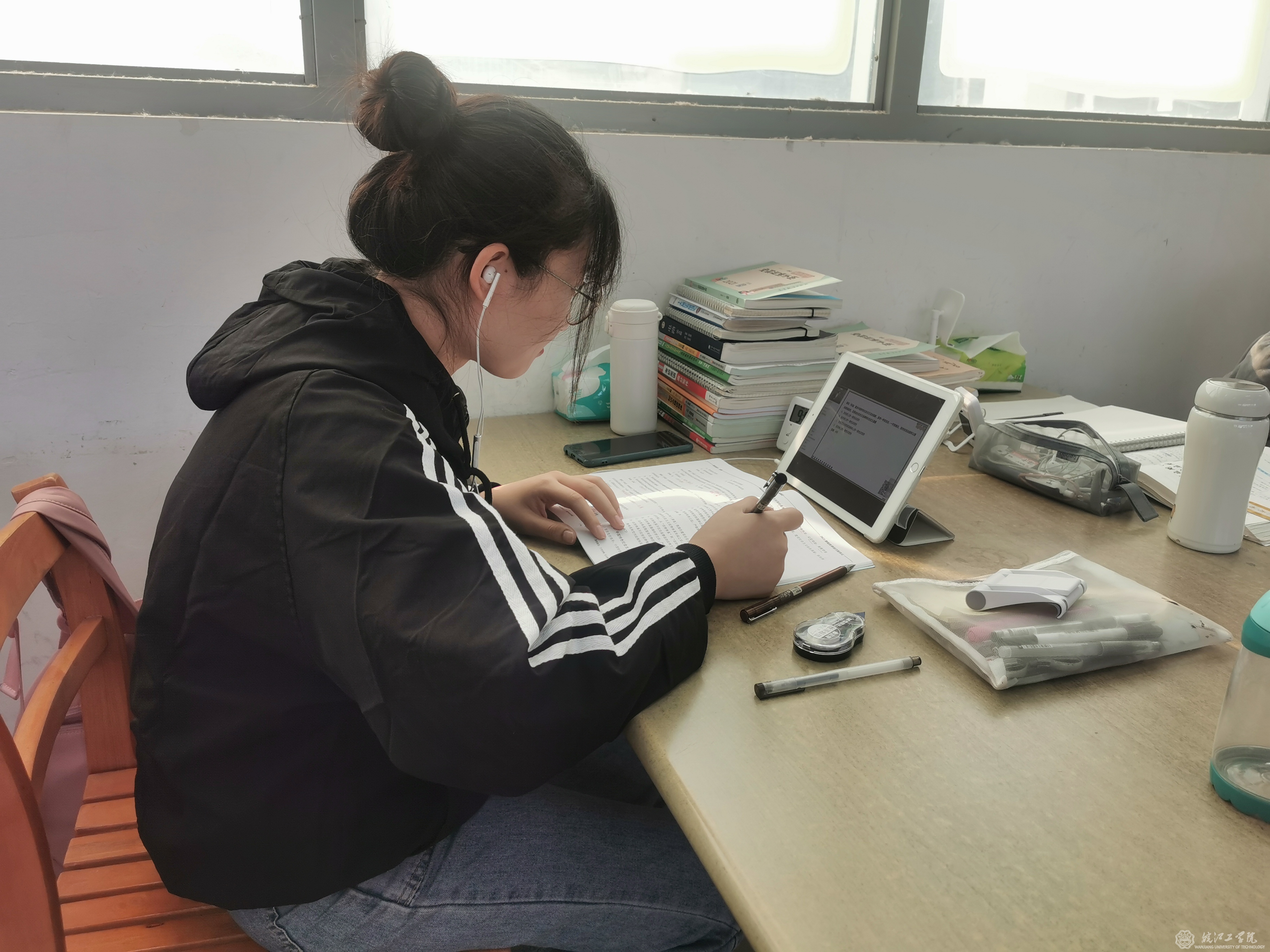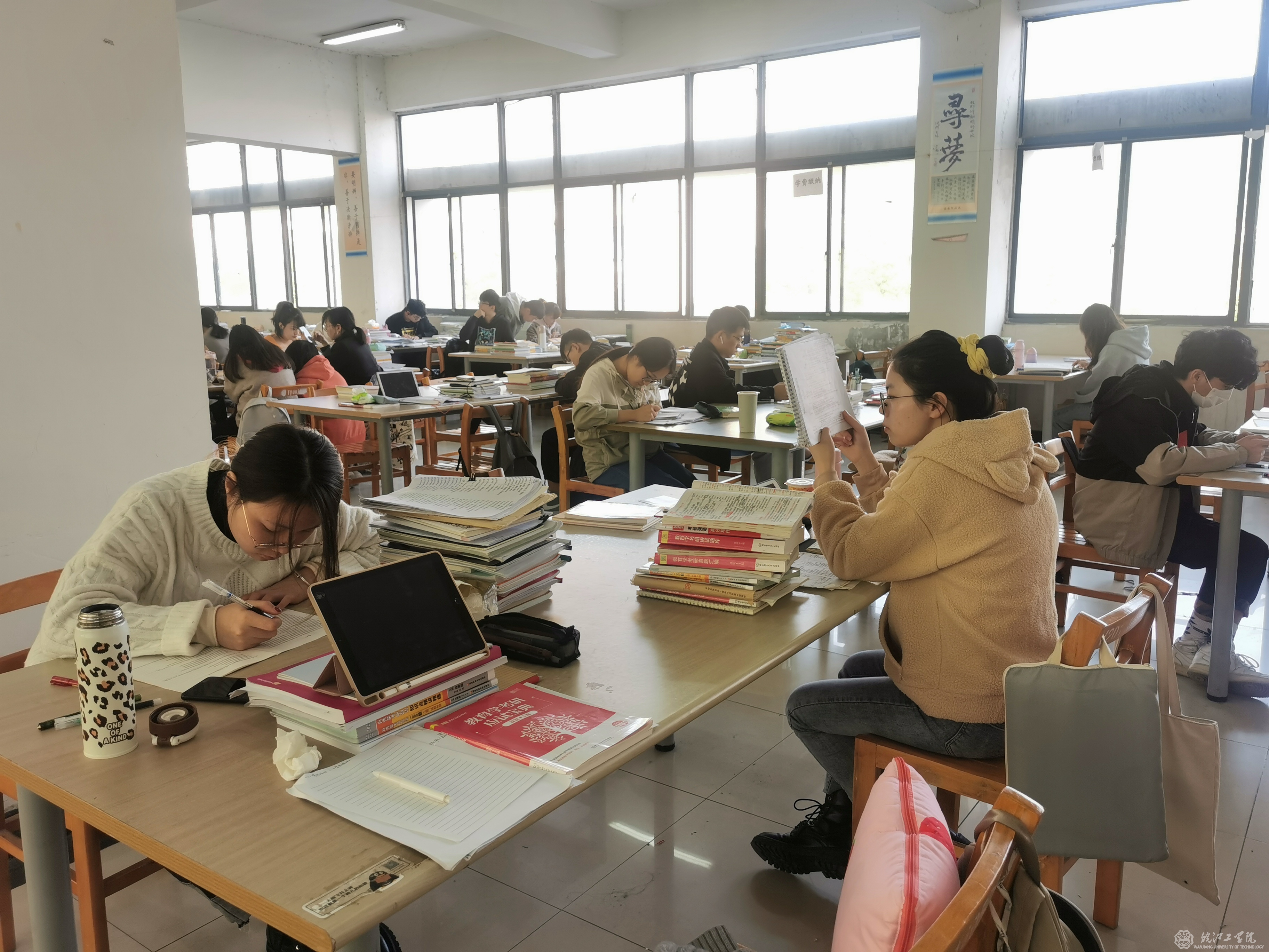 早上6点,beat365正版唯一官方网站图书馆的门口已经有学生等候开馆。一名大四考研女同学表示,她每天都坚持来图书馆学习,早上来迟了就没座位了。走进图书馆,每一个自习室都坐满了人,甚至在走廊和墙角都能发现努力学习的学生。