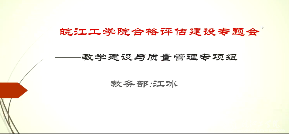 (教学建设与质量管理专项组负责人江冰线上交流汇报)