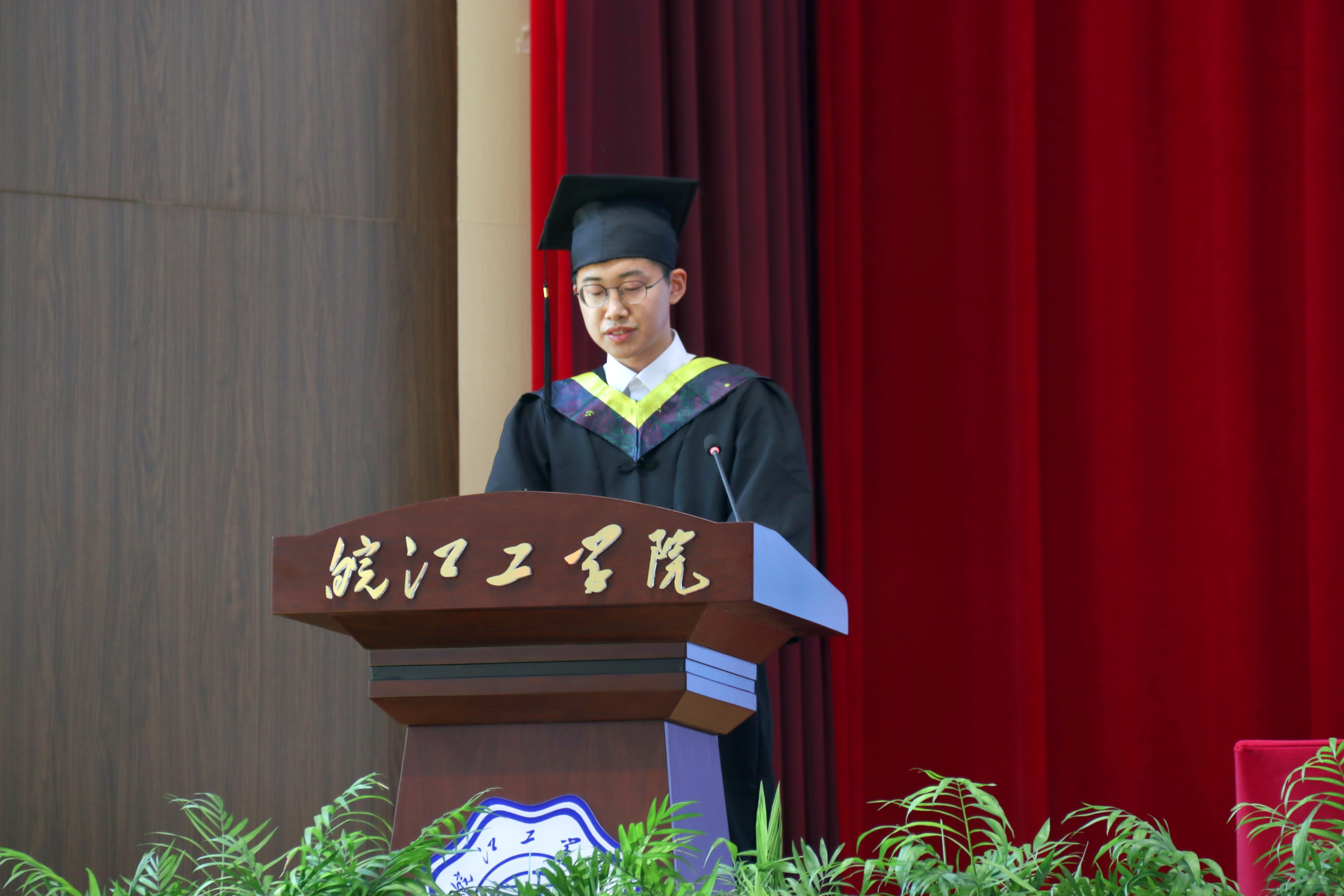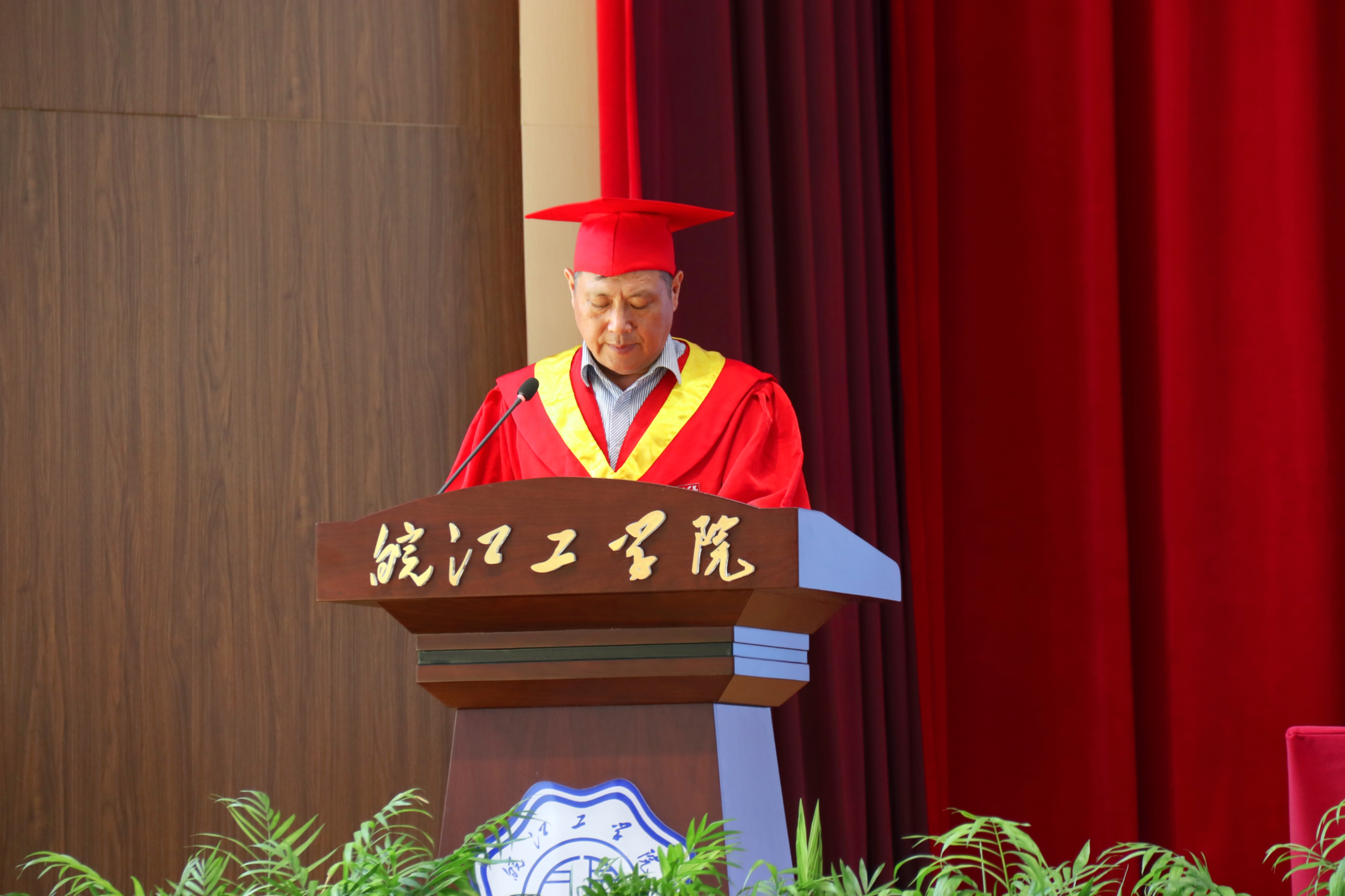 阮怀宁宣读了省级优秀毕业生表彰名单,并勉励毕业生们在今后的学习和生活中要积极进取、努力拼搏、激情澎湃、超越自我,积极为实现中华民族伟大复兴做出贡献,创造精彩人生。