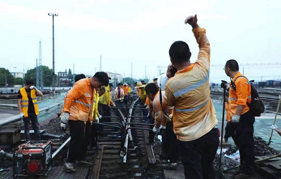 实践队伍跟随鲍主任和程书记,在不妨碍现场工作的情况下,来到车间的户外工作地点,听着程书记对于铁路工作的介绍,指导老师和实践队队员们不禁感慨铁路人的伟大,对芜工人的钦佩油然而生。