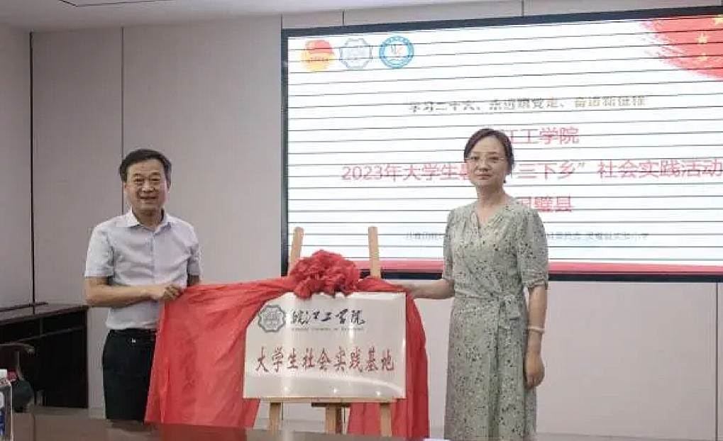 与会领导为校地合作共建基地揭牌,正式拉开beat365正版唯一官方网站2023年大学生暑期“三下乡”社会实践活动的帷幕。