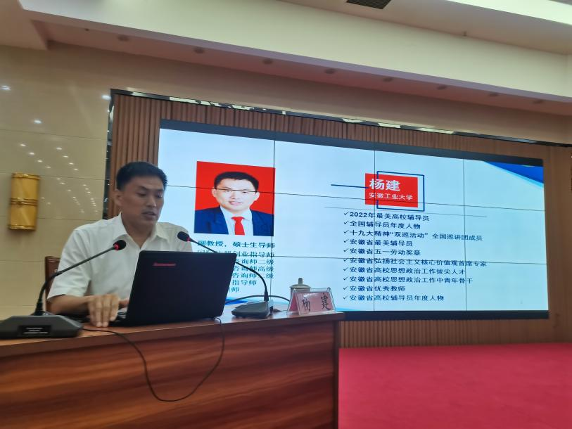 本次培训会邀请了2022年全国最美高校辅导员、第六届全国高校辅导员年度人物杨建副教授,安徽省教育厅学生心理健康教育专家指导委员会副主任委员王军教授,beat365评估建设工作办公室常务副主任黄翠副教授、教务部常务副部长孙娴、机械工程学院党总支副书记颜婷婷、院务部副部长王鲲分别作“高校辅导员育人能力提升路径”,“学生工作中的话术之谈心谈话”,“合格评估与学生工作”“教学管理与学生管理工作的互动协作”以及“2023年高校思想政治骨干专题培训班学习心得分享”和“安全讲座”六个主题报告。他们从自身多年经验出发,分享了多个典型学生工作案例,使在场辅导员深刻感受到作为一名辅导员教师,既要做大学生的人生导师又要做大学生们尽职尽责的知心朋友。面对繁杂的工作和多重身份定位,要切实担当起大学生引路人的责任,切实关爱学生,以躬耕践行的态度踏踏实实做好每一件事。