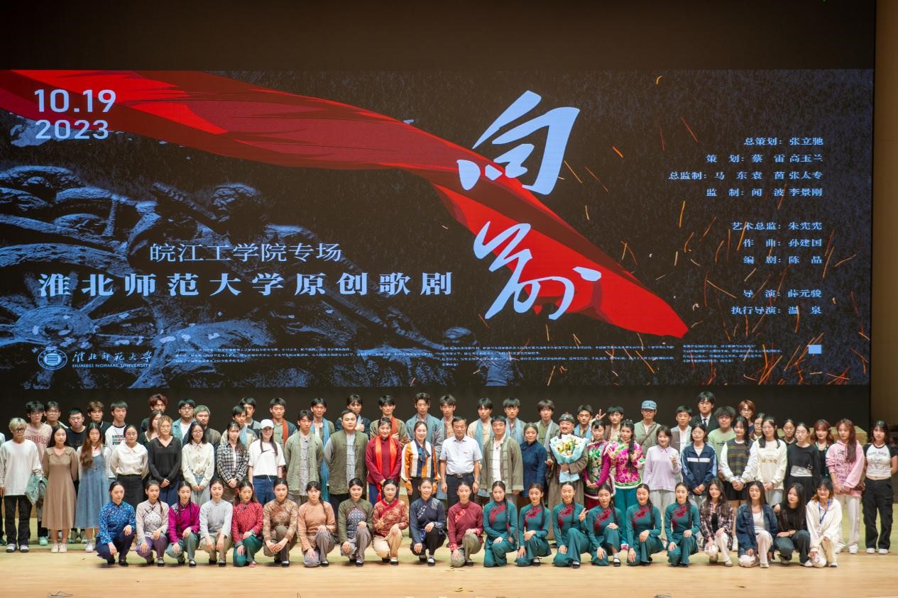 10月19日下午,2023年“高雅艺术进校园”淮北师范大学原创歌剧专场演出在beat365霍里山校区体育馆拉开帷幕。淮北师范大学音乐学院院长袁茵、党总支副书记李景刚、beat365正版唯一官方网站党委副书记孙良出席活动。800余名师生到场观看,现场气氛热烈。