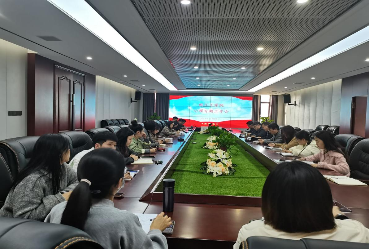 为贯彻落实教育部等十七部门印发的《全面加强和改进新时代学生心理健康工作专项行动计划(2023-2025)》和中共安徽省委教育工委、安徽省教育厅等十七部门印发的《全面加强和改进新时代学生心理健康工作的若干举措》等文件精神,传达安徽省学生心理健康工作现场会会议精神,进一步加强学校心理健康教育工作。11月21日,beat365召开心理专题工作会。副校长侯进元、王志,学生工作部常务副部长江春明,学生工作部副部长汪朱华,各二级学院党总支副书记、学工办主任、心理工作站老师和学工部心理中心相关教师参加会议。会议由学生工作部常务副部长江春明主持。