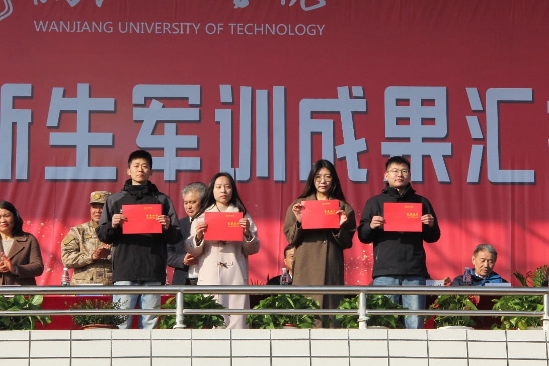 汇报表演结束后,侯进元宣读表彰决定。决定授予蔡东杰等十二名教官“优秀带训教官”荣誉称号,授予施晶晶等五名“优秀先进工作者”荣誉称号,授予顾思桐等107名同学“军训积极分子”荣誉称号,授予胡昭辉等128名同学“内务标兵”荣誉称号。学校领导和承训部队代表为获奖人员颁发荣誉证书。