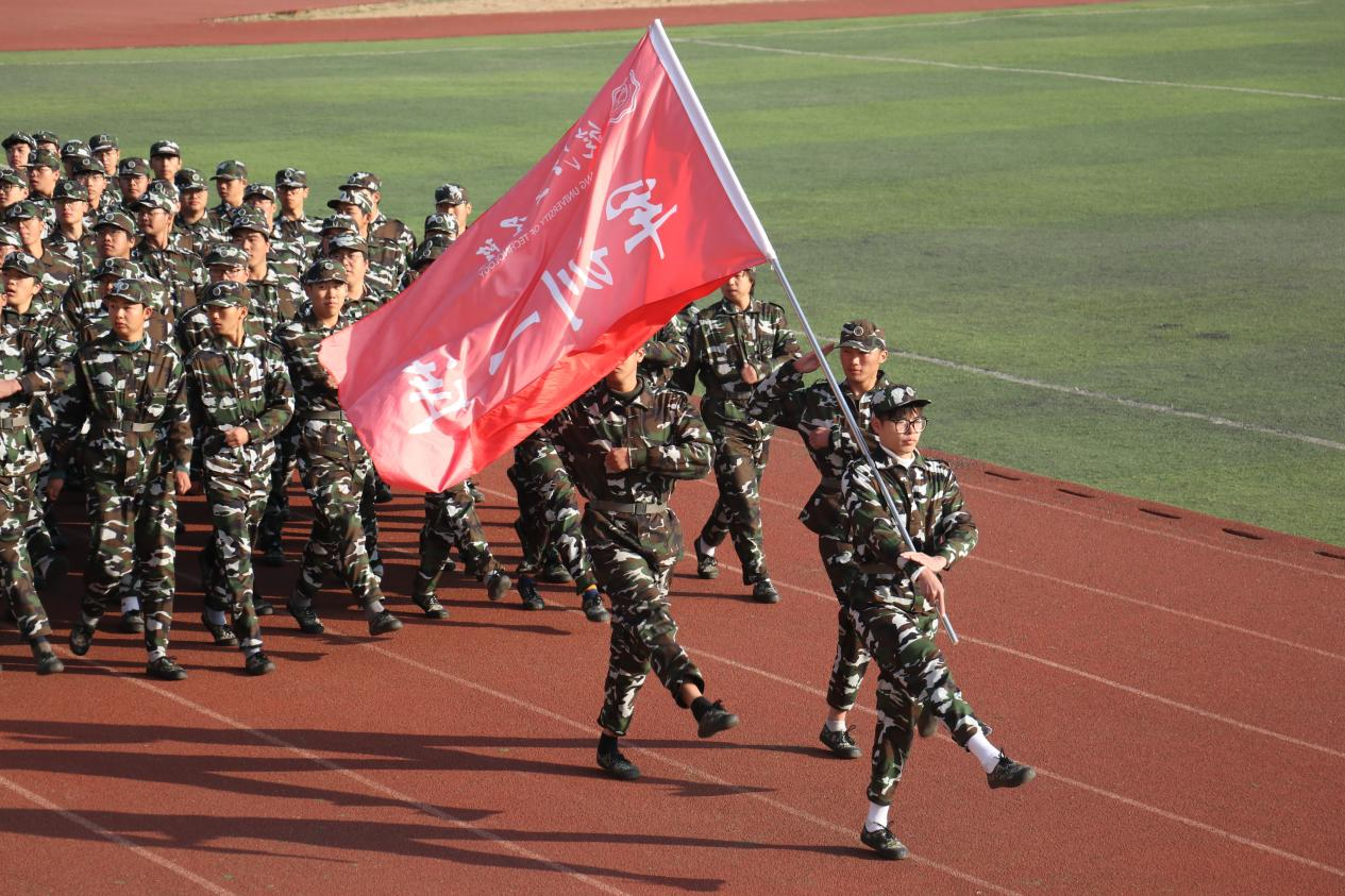 紧接着42个连队方正以青春昂扬的姿态、坚定有力的步伐依次经过主席台。他们一袭迷彩,英姿飒爽;一身正气,风采无限,在行走间展示出了一股威严的军人气派。挺拔的身姿、整齐的步伐、嘹亮的口号,一系列连贯的动作展现出了新时代大学生朝气蓬勃的风貌。