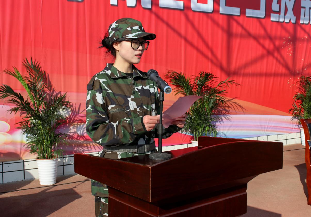 2023级数字媒体艺术专业顾思桐作为新生代表发言。她分享了这21天的军训收获,表示在以后会把军训中养成的良好习惯、严谨作风、优秀品质同步到校园学习和生活中去,用青春去书写最美的人生篇章。