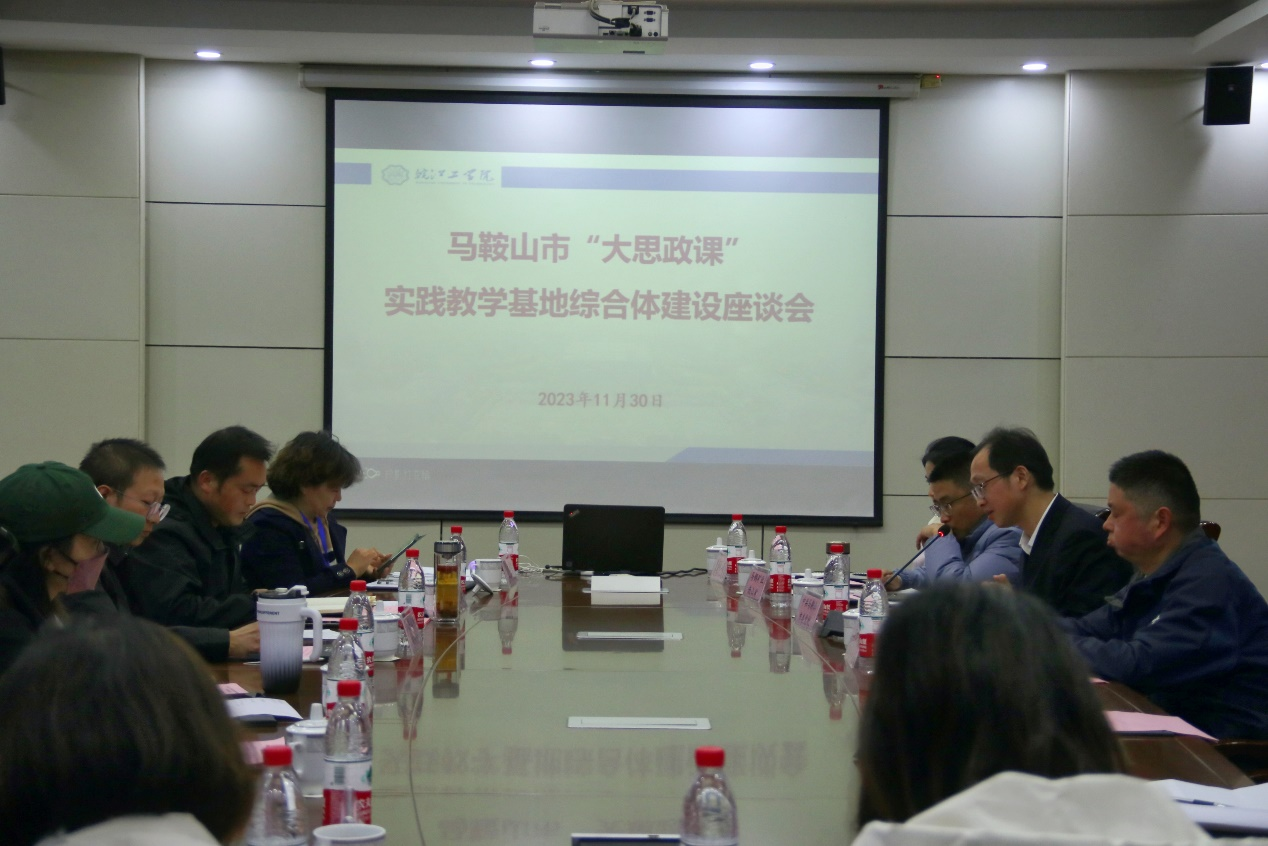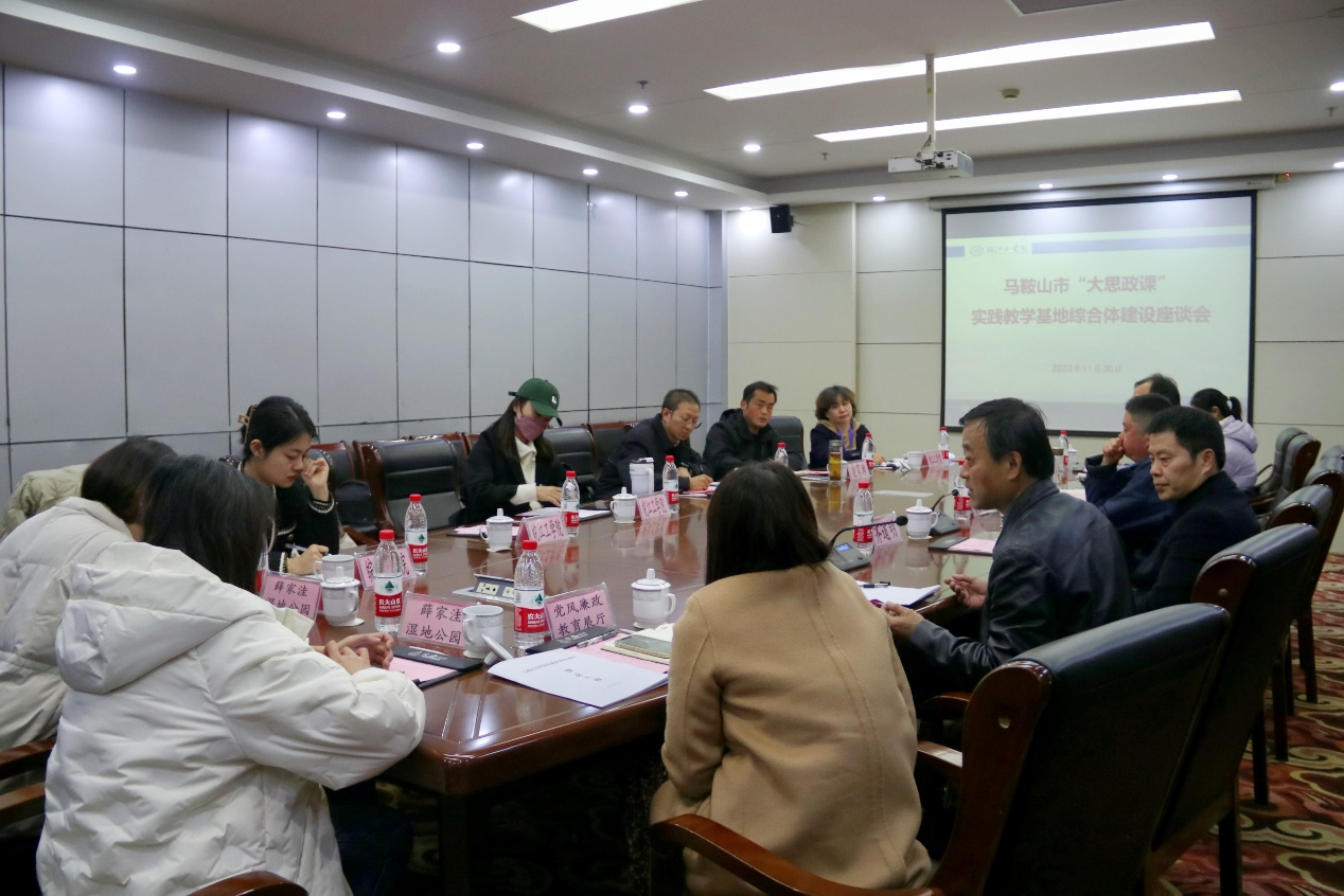 11月30日下午,beat365在文海宾馆2号会议室召开马鞍山市“大思政课”实践教学基地综合体建设座谈会。市委宣传部副部长齐道明,第一批“大思政课”实践教学基地各单位负责人,beat365正版唯一官方网站副校长孙良,beat365正版唯一官方网站马克思主义学院党总支书记、常务副院长刘双参加本次座谈会。座谈会由刘双主持。