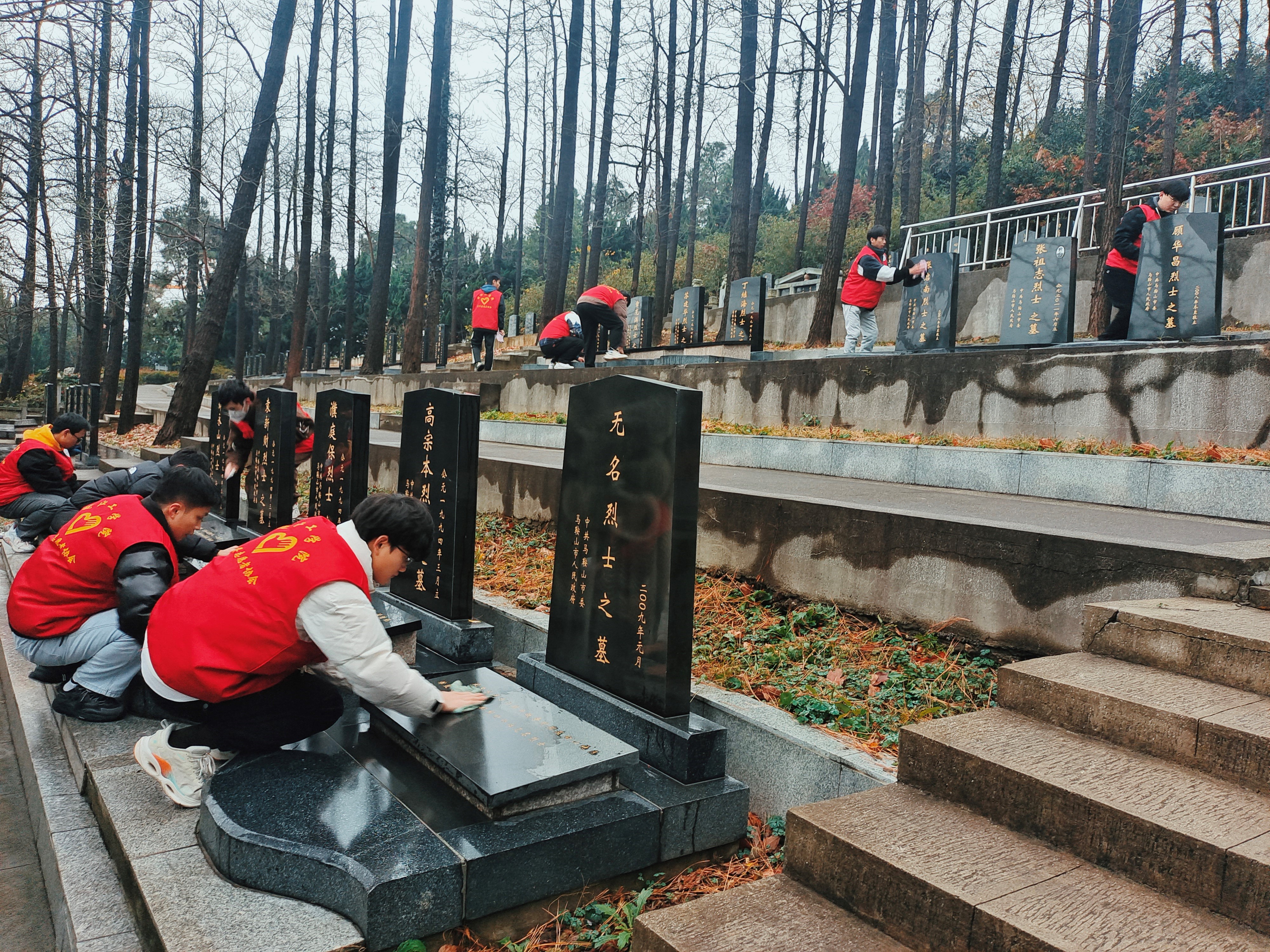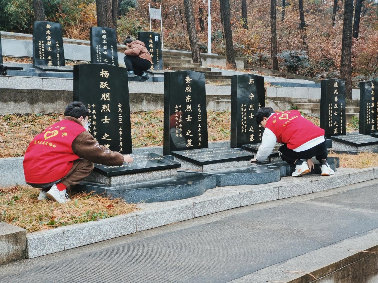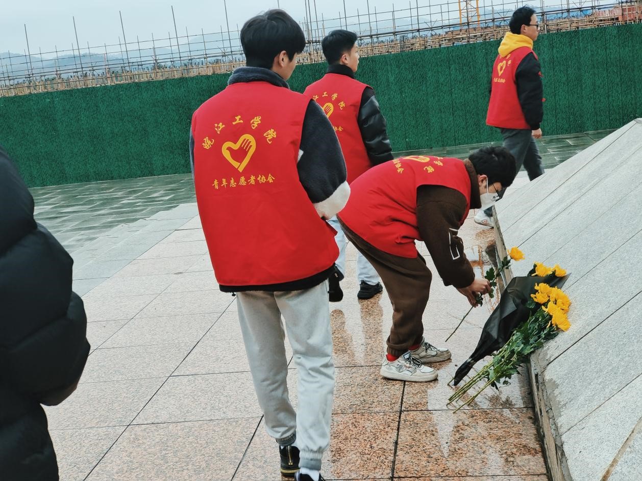 昭昭前事惕惕后人,缅怀先烈吾辈当自强。2023年12月13日是第10个南京大屠杀死难者国家公祭日,为缅怀革命先烈,弘扬优良革命传统和爱国主义精神,beat365青年志愿者协会师生们联合团花山区委走进濮塘烈士陵园举行国家公祭日悼念仪式。