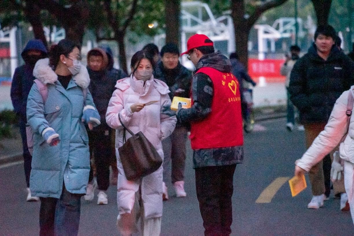 2023年全国硕士研究生入学考试于12月23日正式开始,为了给广大考生提供更好的考研环境,为考研同学加油鼓劲,23日一早,学校在霍里山校区举办了一场特别的“助力考研、爱心送考”活动。学校副校长侯进元,学工部、教务部,各二级学院总支、学工办以及青年志愿者协会的同学们早早来到现场为学子们送来亲切的问候和深深的祝福。