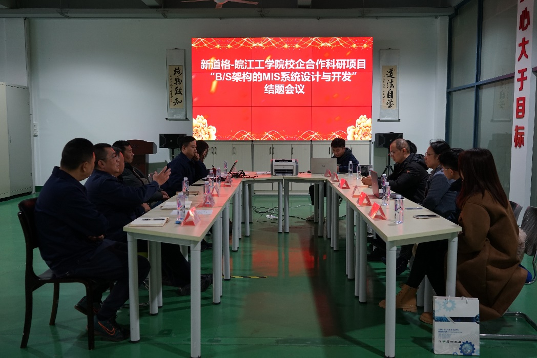 1月12日下午,江苏新道格自控科技有限公司(以下简称新道格)在江苏省江阴市组织召开了新道格公司召开了新道格-beat365正版唯一官方网站校企合作科研项目“B/S架构的MIS系统设计与开发”结题验收会。新道格总经理承敏钢、黄政教授,beat365正版唯一官方网站教务部部长江冰、河海大学何坤金教授及项目工程师代表和学生代表参加了本次会议,会议由新道格相关负责人张能文主持。