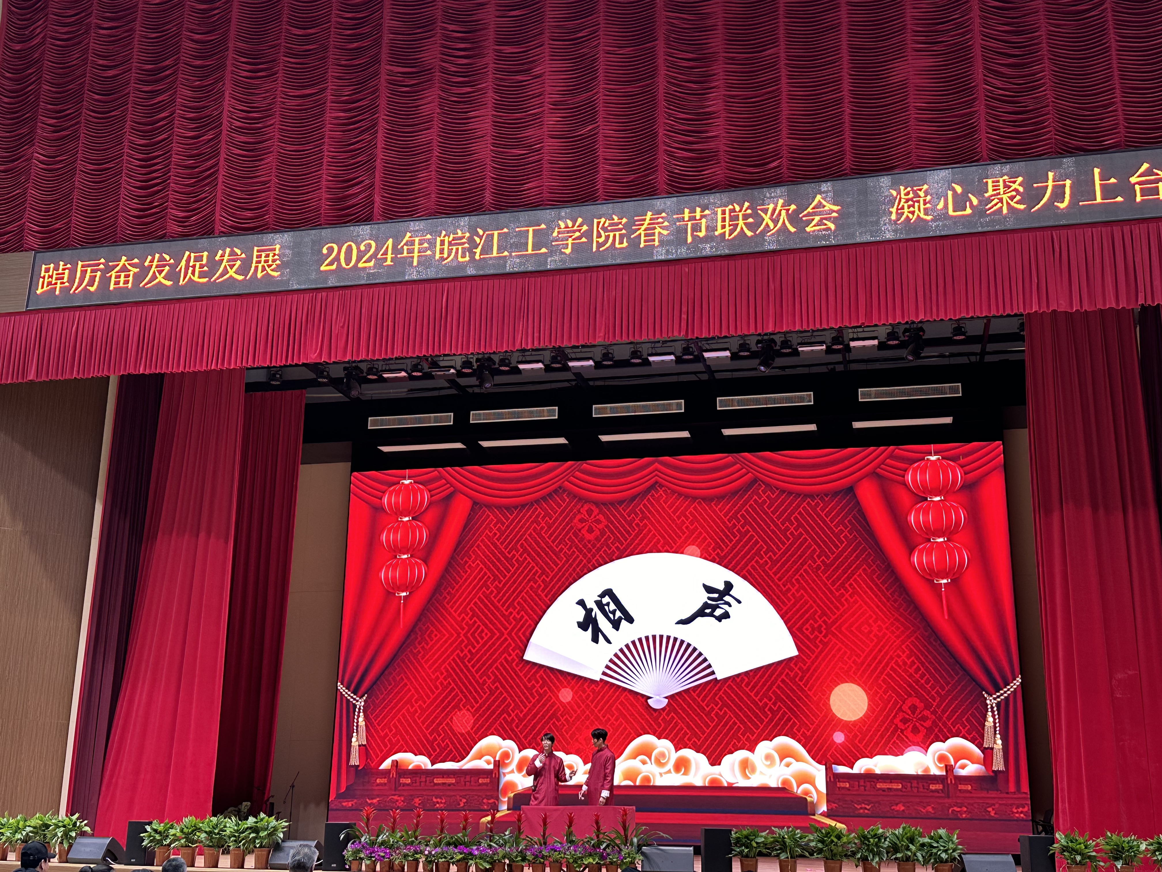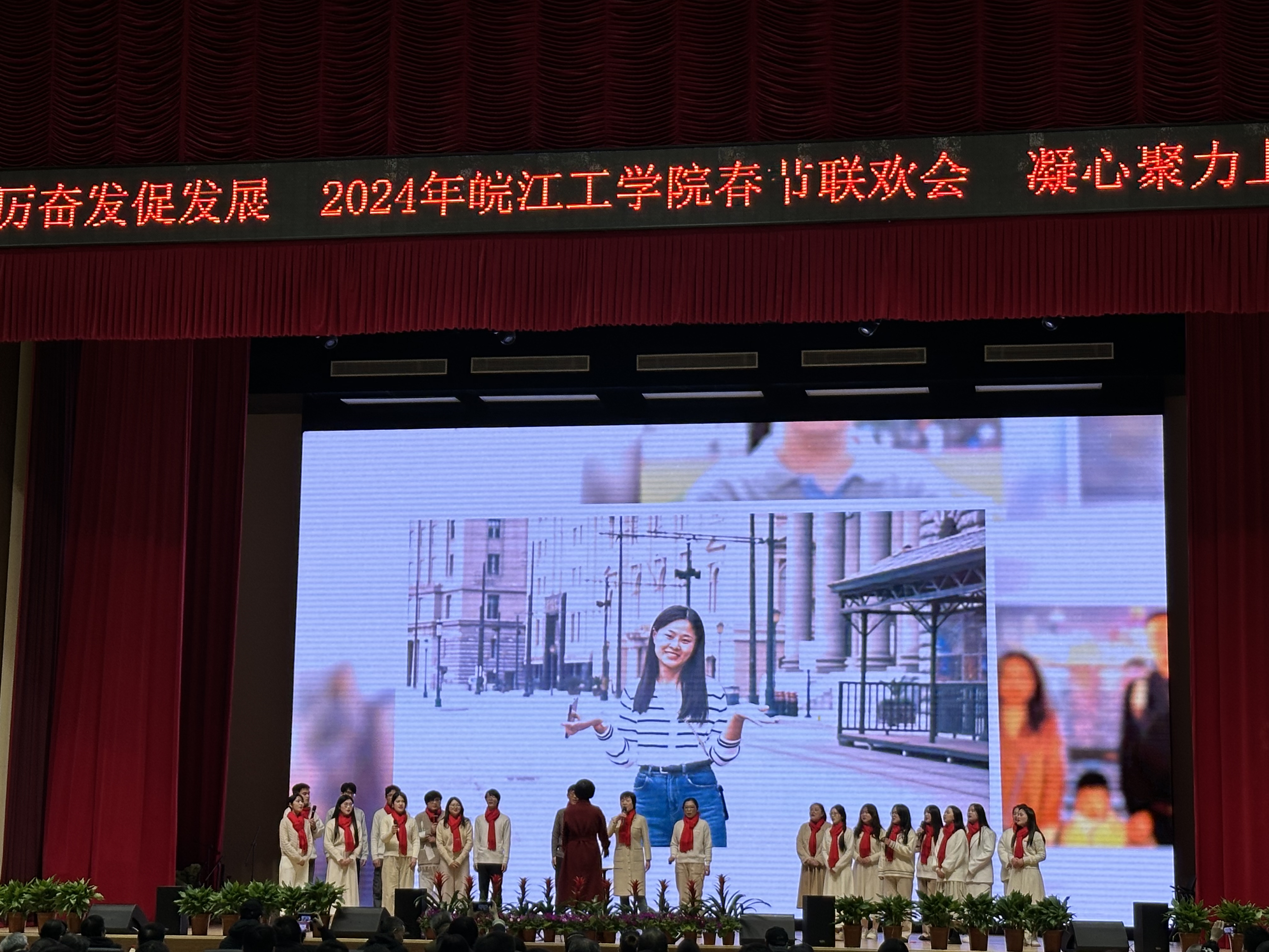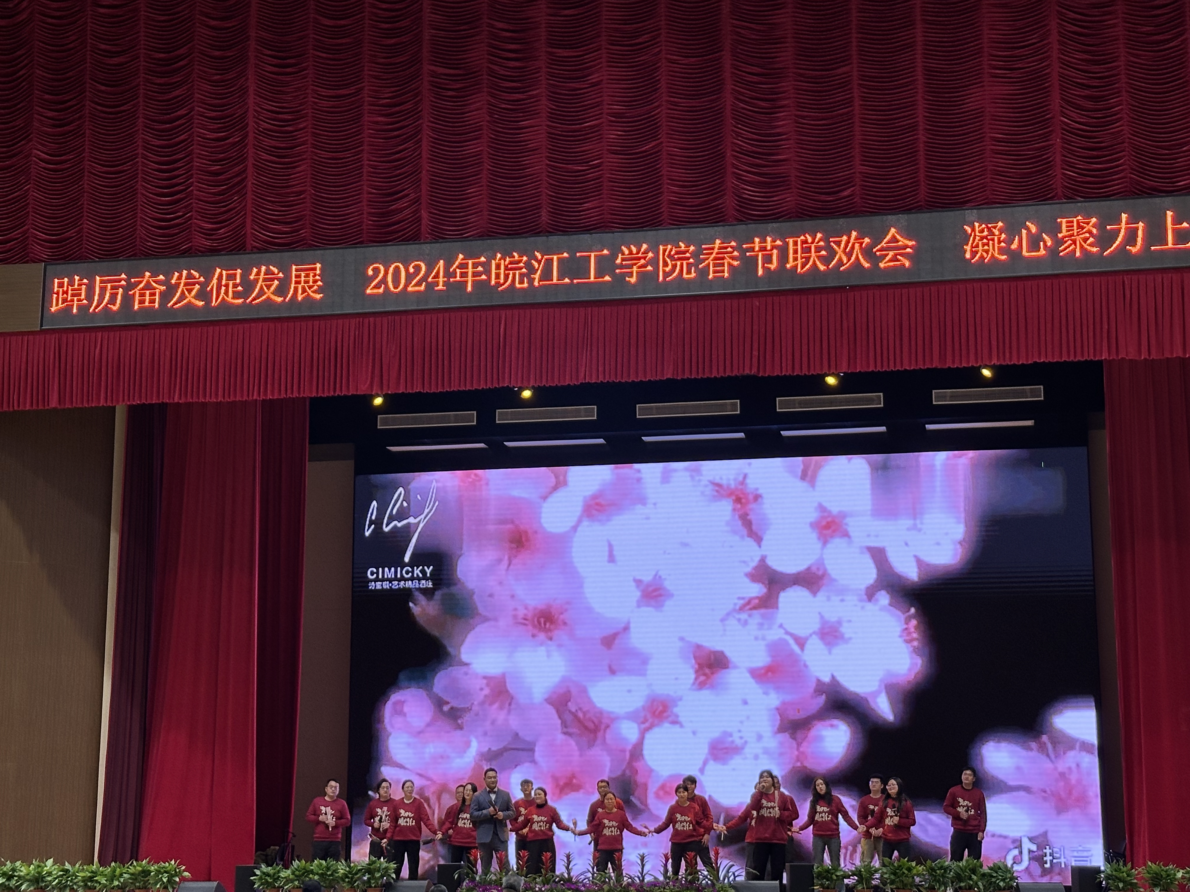 在一阵阵鼓掌声中迎来了2024年beat365正版唯一官方网站春节联欢会。学校职能部门以及水利工程学院、土木工程学院、电气信息工程学院、机械工程学院、财经学院等二级学院相继上台进行表演。演出形式丰富多彩,从合唱、歌舞到相声、配乐诗朗诵等,每个节目都充分展示了学校教职工良好的精神面貌和深刻的情感表达,为在场的所有人带来了一场视觉和听觉的盛宴,最后郑蒲港校区表演人员咏唱《我和我的祖国》,大家用深情嘹亮的歌声,祝福伟大的国家在新的一年更加繁荣富强,国泰民安。