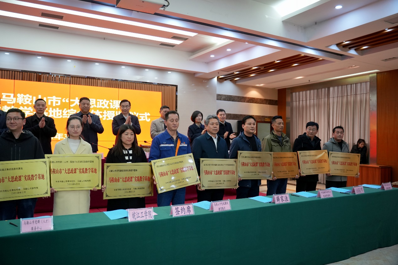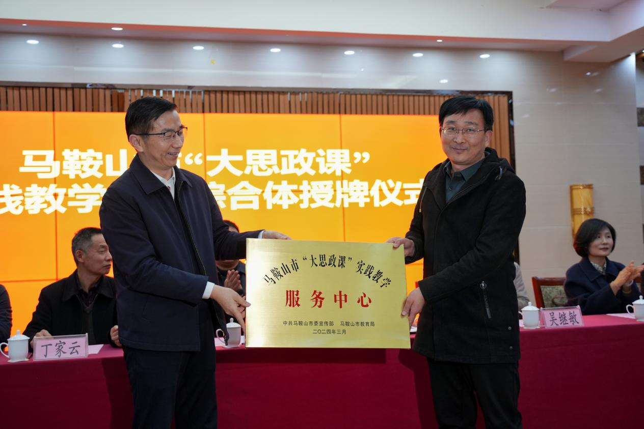会上,吴继敏与马鞍山市“大思政课”实践教学基地负责人进行签约仪式;陈永红等领导向马鞍山市“大思政课”实践教学研究中心、马鞍山市“大思政课”实践教学服务中心、马鞍山市“大思政课”实践教学基地分别授牌。