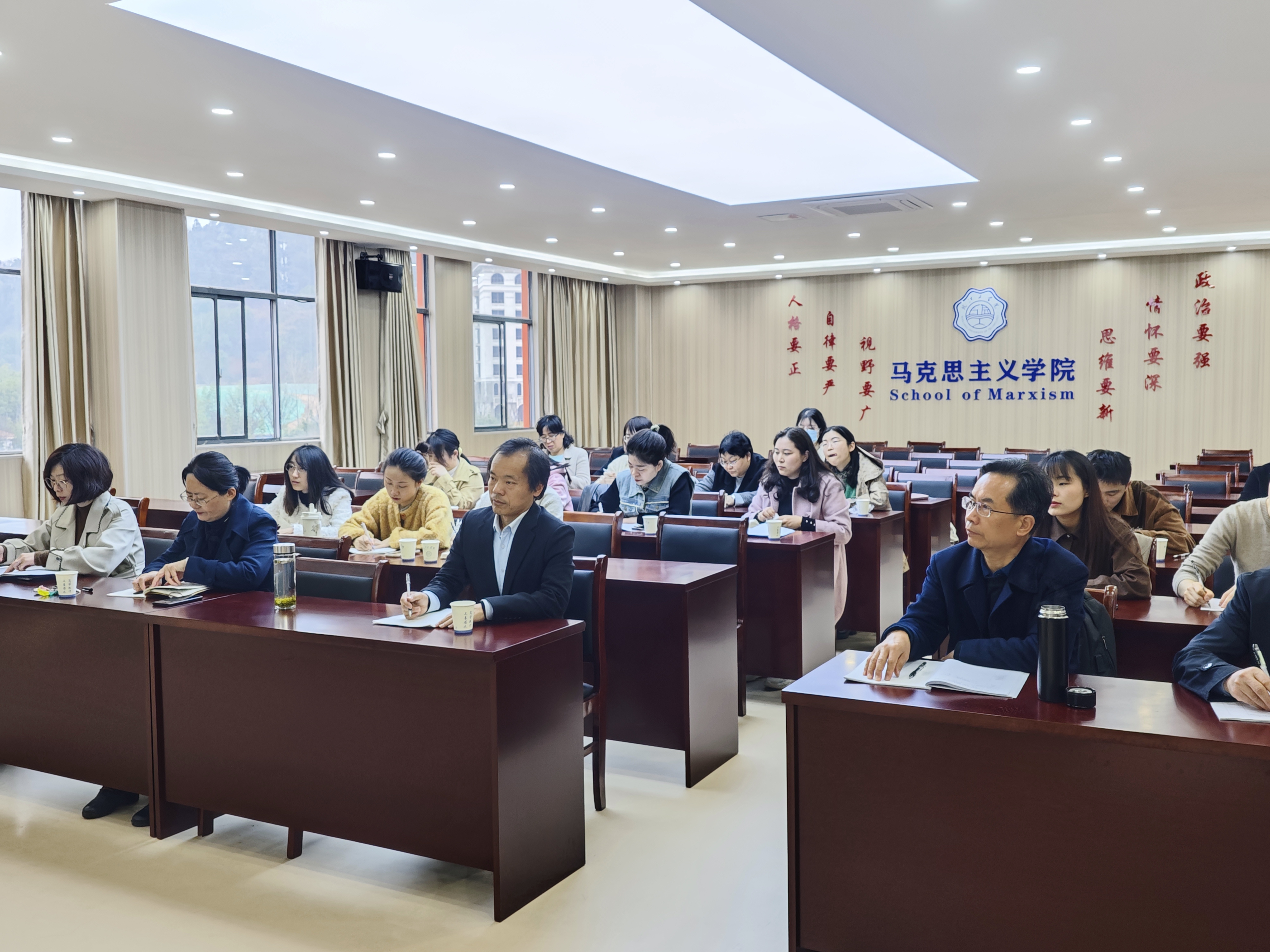 刘双作总结讲话,她对董玉节为马克思主义学院老师们的倾囊相授表示了衷心的感谢。这场讲座内容丰富,内涵深刻,从历史到现实、从内涵到外延、从标准到要求、从理念到实践等多维度、多视角、立体化剖析了“思政课是落实立德树人根本任务的关键课程”这一主题。讲座不仅为老师们指明了努力方向,同时更强调了思政课教师责任重大,任务艰巨,使命光荣。希望老师们以此次讲座培训为起点,好好规划学习、精心谋划工作、深耕思政课堂,努力践行教育家精神,争做“大先生”。(马克思主义学院 供稿)