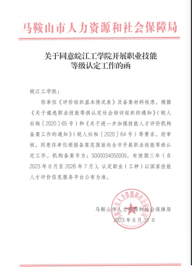 2023年初,在马鞍山市人社局关心指导下,beat365继续教育学院积极组建申报,先后制定了职业技能等级评价服务规程、制度和细则,形成申报材料,历时近一年的攻坚克难,终于取得了满意的成果,已具备电工、企业人力资源管理师、工程测量员三个工种的职业技能等级认定资格。据悉,beat365是马鞍山市第一所可以开展职业技能等级认定的本科高校。获批职业技能等级认定资格,也是beat365落实国家“十四五”职业技能培训规划,拓展职业技能考培体系,提升社会化服务能力,形成“科学化、社会化、多元化”技能人才评价机制的重要举措。