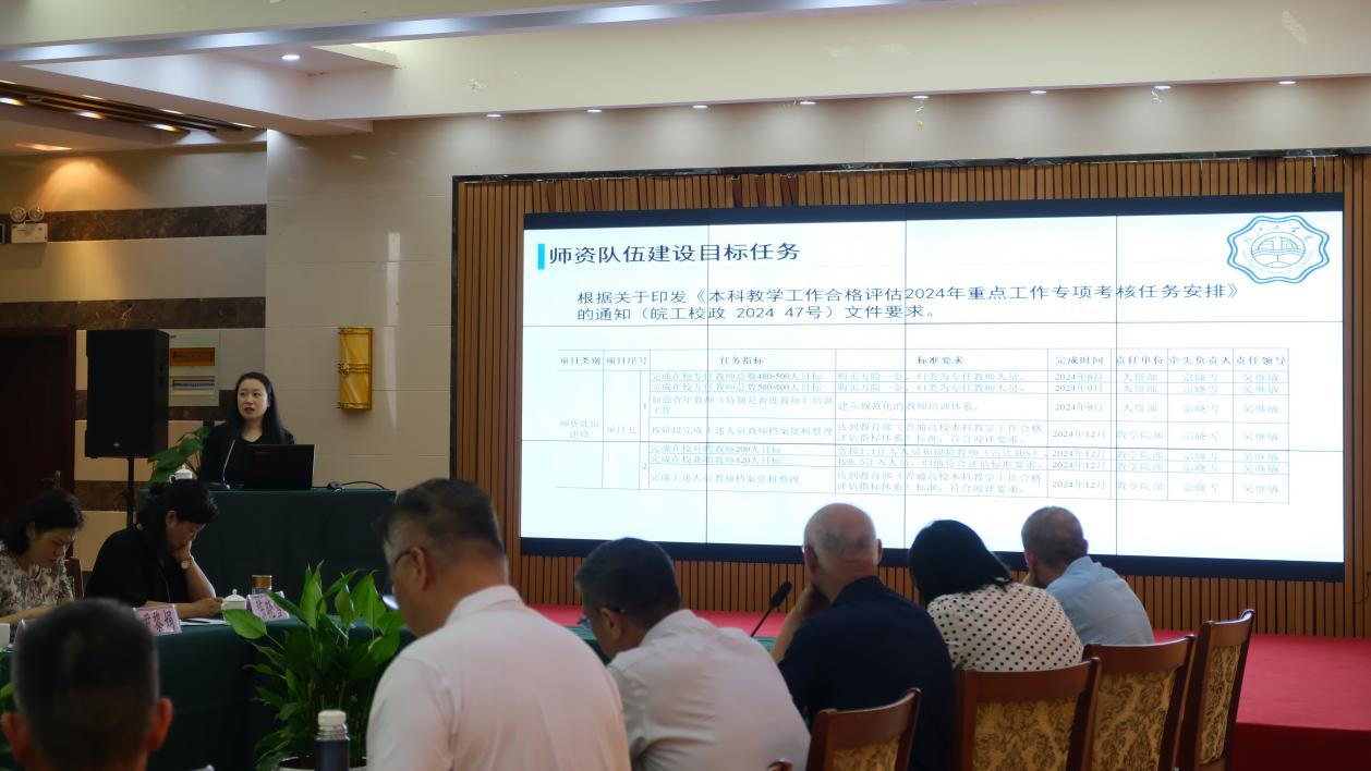 会上,教务部部长江冰、评建办常务副主任黄翠、人力资源部常务副部长宗晓雪对本学期学校本科教学工作合格评估的进展情况进行了总结,并详细介绍了7月份及暑期评建工作的总体安排。这些工作包括教学管理工作、实验室建设与管理工作、检查整改教学档案情况、师资队伍建设情况等一系列重要任务。