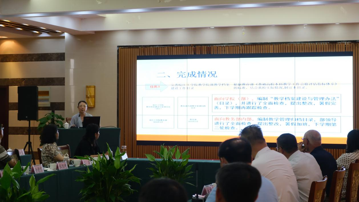 常务副校长郑明东围绕2024年度重点工作内容,部署了暑期的相关工作。他强调,要对照标准,系统总结成效,持续强化学校实验室等硬件设施建设;教师要通过引入先进教学理念、创新教学方法等方式,提高课堂教学质量以及实践教学质量;实习基地建设要落到实处,确保学生要在真实的工作环境中学到知识、得到锻炼、增长才干;多维度深度改善学风建设,努力营造积极向上的学习氛围,促进学生全面发展。