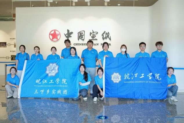 7月8日上午,团队来到了中国宣纸文化园这片充满历史底蕴和文化感染力的土地。首先,团队穿过长廊来到了国纸展厅,精美的建筑和典雅的大堂展现着宣纸的文化魅力,通过参观一些宣纸工艺品增加了对宣纸更为直观的认识。紧接着,团队来到了博物馆一楼,每一张古老的宣纸、每一件珍贵的文物,都在阐述着宣纸文化的悠久历史。沿着楼梯直上,二楼的馆藏宣纸与书画精品展示区让团队眼花缭乱,尤其是在超级宣纸“三丈三”的生产车间中,给予了大家强烈的视觉震撼。最后,大家参观了宣纸制作流程展示区,从原材料的处理到纸张的制作,每一个环节都凝聚着工人们的汗水,体现了浓浓的工匠精神,也让团队意识到宣纸制作不仅是一门技艺,更是一种文化传承。