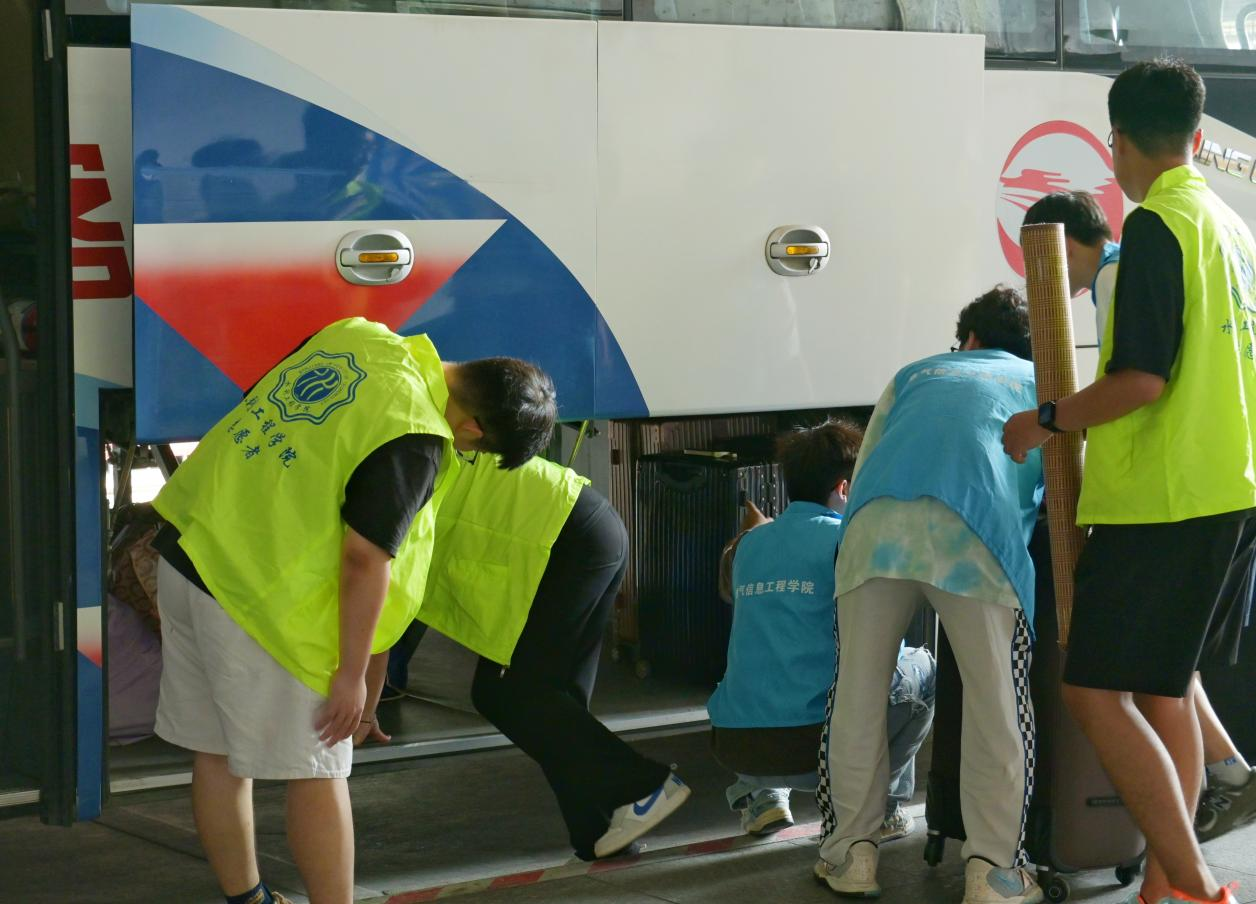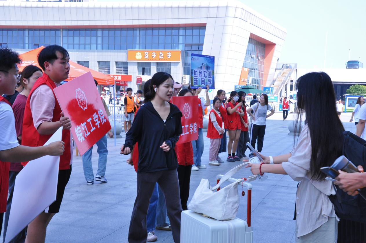 为确保新生报到快速、便利、安全,学校组织安排各二级学院、相关部门教职工和迎新志愿者到达马鞍山东站、郑蒲港校区各报到接待点迎接新生,安排迎新专用大巴,为新生及家长提供免费的班车接送服务,助力新生从校外车站到宿舍的“零距离”。