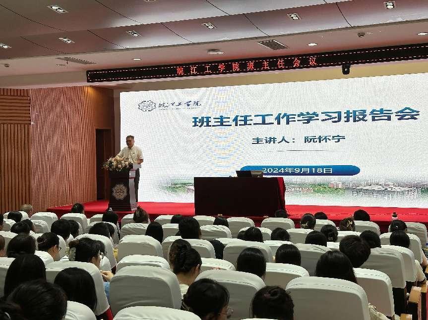 为了积极响应党的教育方针,深刻学习领会并贯彻落实党的二十届三中全会精神,进一步强化立德树人的教育目标,促进学生思想政治教育管理工作的创新与优化,提升班主任队伍的整体素质与专业能力。学校学工部分别在9月11日、18日下午分别举办了2024-2025学年班主任工作学习报告会,报告会在霍里山校区图书馆报告厅进行。学生工作部负责人、全体班主任参加此次培训,beat365党委副书记孙良和副校长阮怀宁出席并在会上作报告。