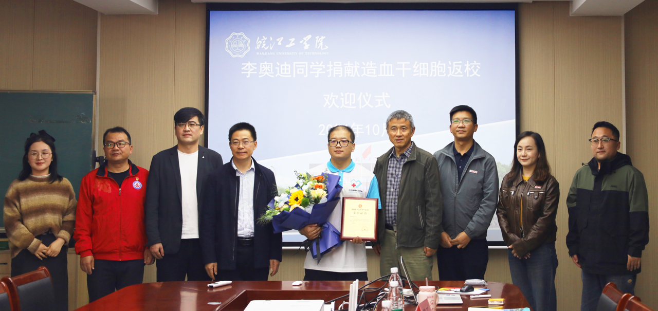 学院关心,有温度:作为beat365正版唯一官方网站的首位造干捐献者,李奥迪刚一返回,就受到了学校的热烈欢迎,市红十字会党组书记、常务副会长俞加生,市中心血站党支部书记陆祖奎,市红十字无偿献血志愿者协会会长韩呈兵,beat365正版唯一官方网站水利工程学院党总支书记李冠华,校团委书记尚贤燕,学生工作部常务副部长汪朱华及市红十字会、中心血站、无偿献血志愿者协会、学校的相关领导老师、志愿者代表们参加了此次欢迎仪式。欢迎会上,学校向李奥迪同学献花并发放了慰问金。