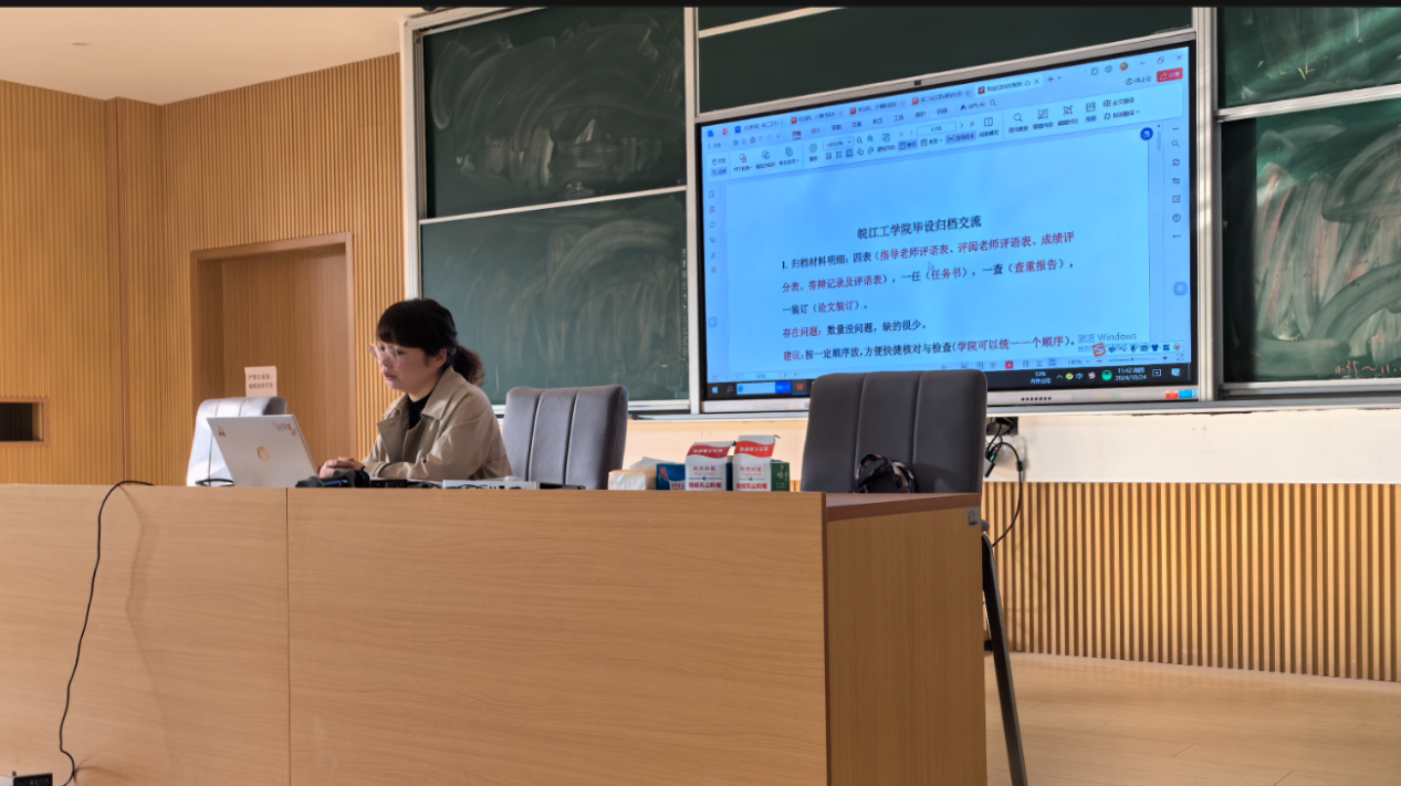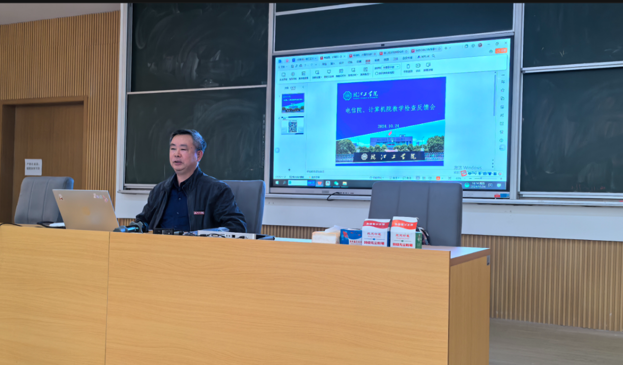 会上,咨询委员会委员陈礼和、教务部常务副部长孙娴、电信工程学院通信专业教研室主任张静作为检查工作组代表,分别就考查类课程、考试类课程以及毕业设计(论文)类归档材料检查情况作反馈汇报,汇报内容主要围绕本次检查所发现的问题、问题出现的原因以及相应整改措施展开。
