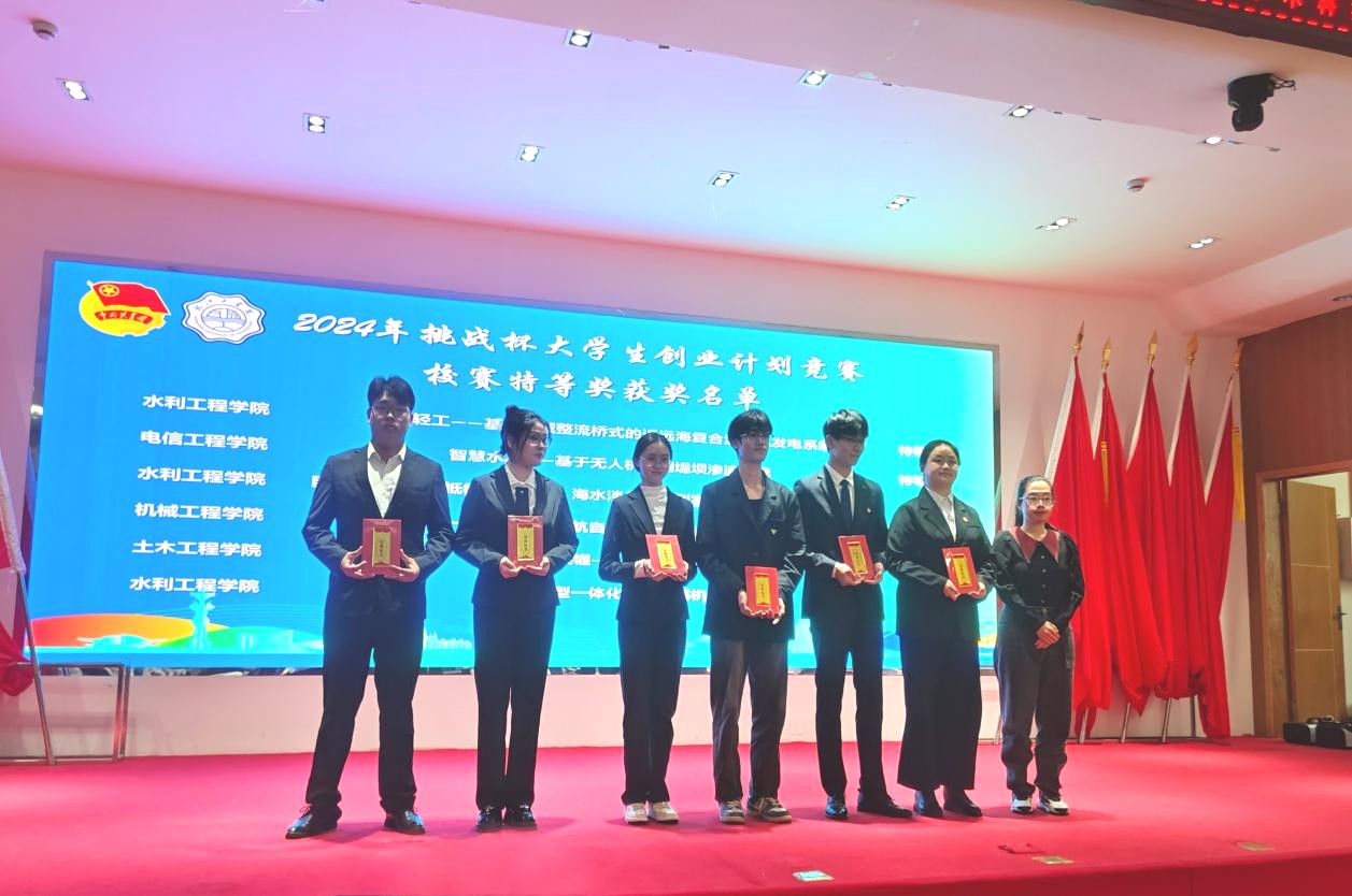 随后,与会领导为2024年“挑战杯”大学生创业计划竞赛中表现突出的2个省级金奖、4个省级银奖、11个省级铜奖、6个校级特等奖、14个校级金奖项目团队进行颁奖。据悉,在本次竞赛中共有2支团队荣获国家级铜奖,实现beat365在全国“挑战杯”赛事上的新突破!其中电信工程学院《低空经济——政务航空平台先行开拓者》项目团队获得主体赛国家级铜奖,水利工程学院《浮浪轻工——自适应河流波浪能发电装置引领绿色能源新时代》项目团队获得配套交流活动“秦创原”创新挑战赛国家级铜奖。