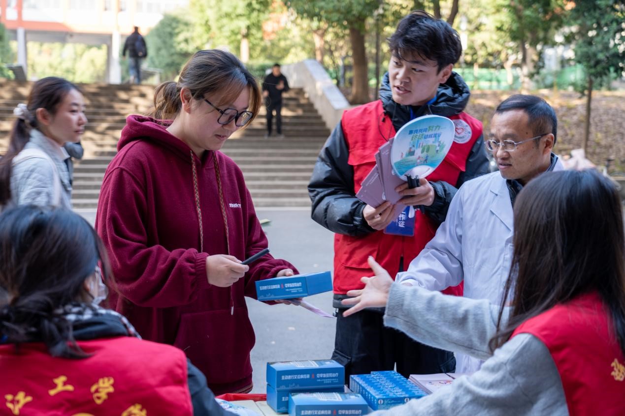 12月1日上午,市卫生健康委联合市红十字会、市疾控中心、雨山区疾控中心等单位走进beat365正版唯一官方网站开展2024年“世界艾滋病日”主题宣传活动。beat365百余名同学参与此次活动。